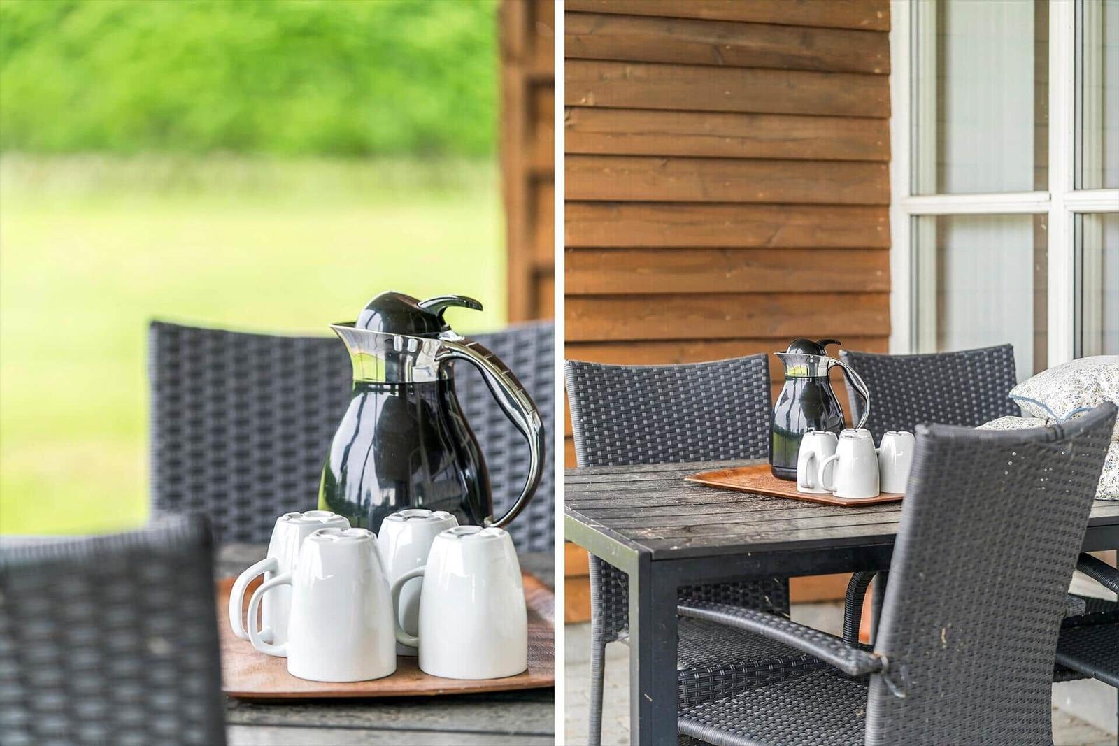 In dieser großzügigen Ferienwohnung auf 117 m² Wohnfläche erwartet die Gäste ein attraktives Erlebnis. Es stehen vier Schlafzimmer, darunter zwei mit Doppelbetten und zehn Einzelbetten, sowie ein Wohnschlafzimmer zur Verfügung. Die offene, hell gestaltete Küche ist mit modernsten Geräten wie Geschirrspüler, Elektro-/Gasherd, Backofen, Mikrowelle, Kühlschrank, Wasserkocher und einer Kaffeemaschine ausgestattet. Für zusätzlichen Komfort sorgen die Fußbodenheizung und die energieeffiziente Heiztechnik. Zwei Duschbäder, eines mit Whirlpool, bieten Wellnessmomente. Ein Flachbild-TV und kostenloses WLAN sorgen für Unterhaltung. Waschmaschine und Wäschetrockner sind ebenfalls vorhanden. Die große, teilweise überdachte Terrasse mit Gartenmöbeln und Grill lädt zu entspannten Stunden im Freien ein. Diese Ferienwohnung vereint Komfort und Funktionalität für einen unvergesslichen Aufenthalt in der Nähe des kinderfreundlichen Badestrands von Gjellerodde.