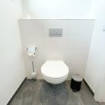Das moderne Badezimmer verfügt über eine bodengleiche Dusche, ein Fenster sowie einen Kosmetikspiegel. Ein zusätzliches Gäste-WC sorgt für Komfort. Die Fußbodenheizung und Klimaanlage garantieren ein angenehmes Raumklima.