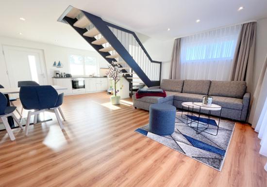 In dieser charmanten Ferienwohnung erwartet die Gäste eine stilvolle und gut ausgestattete Unterkunft. Sie bietet zwei Schlafzimmer, darunter ein Doppelbett, ein Einzelbett und ein Kinderbett, optimal für Familien oder kleine Gruppen. Die offene Küche ist voll ausgestattet mit einem Geschirrspüler, Elektro-/Gasherd, Backofen, Kühlschrank, Kaffeemaschine und Toaster, und lädt zum gemeinsamen Kochen ein.