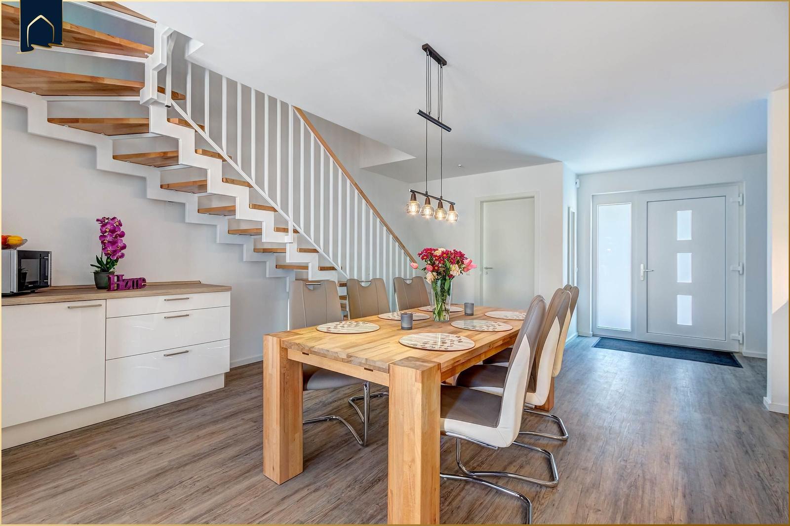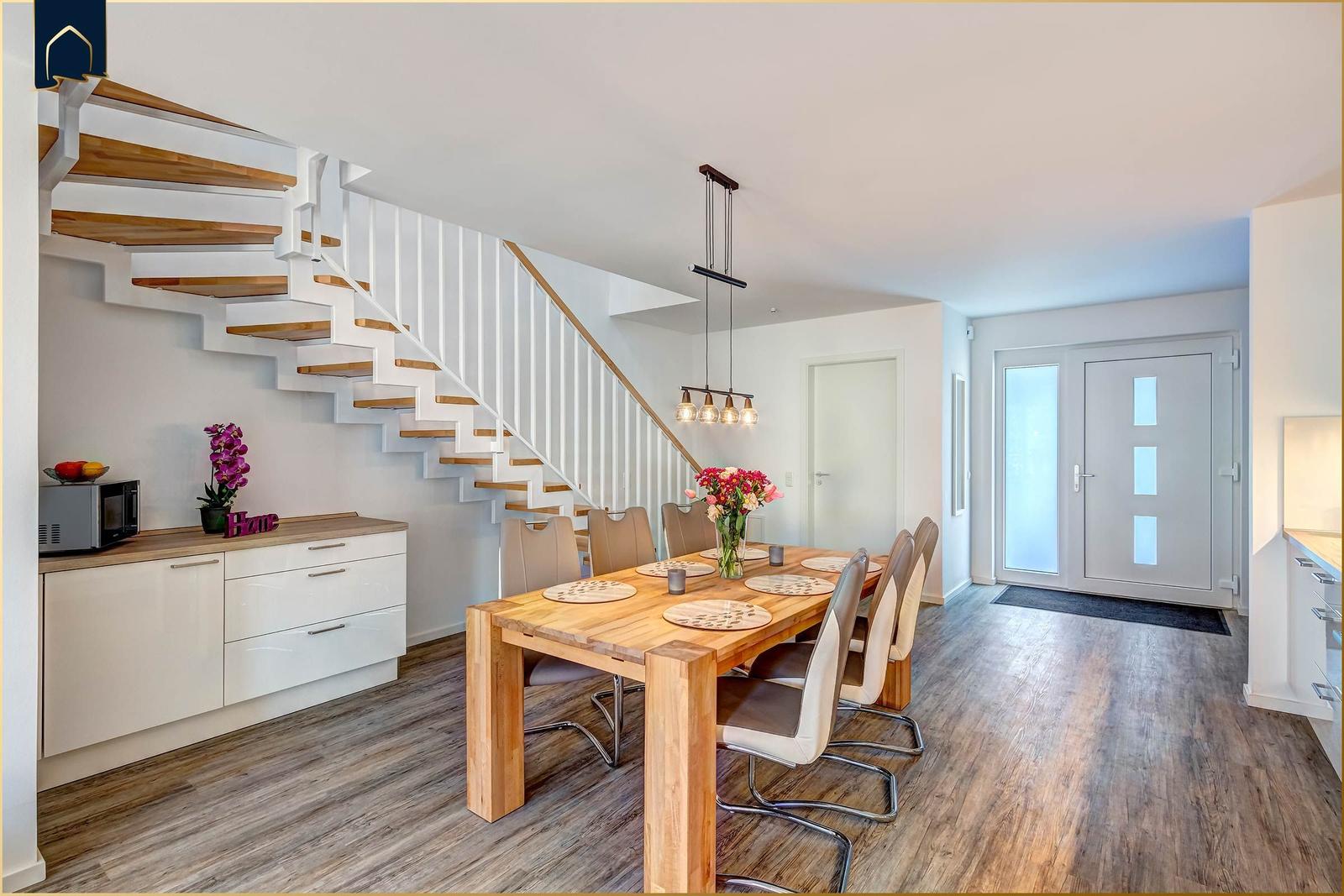 Die Unterkunft „Ostseeparadies“ befindet sich im malerischen Bernsteinquartier von Kölpinsee, nur 750 m vom feinsandigen Ostseestrand entfernt. Diese ideale Lage ermöglicht es Gästen, entspannt zu Fuß zum Strand und zu den nahegelegenen Einkaufsmöglichkeiten in Koserow und Ückeritz zu gelangen, die beide schnell erreichbar sind. In der Umgebung laden Rad- und Wanderwege sowie das Achterwasser zu erholsamen Aktivitäten in der Natur ein. Für Familien stellt Karls Erlebnisdorf in Koserow ein besonderes Highlight dar, mit zahlreichen Attraktionen, die sowohl Kinder als auch Erwachsene begeistern. Die Anreise erfolgt bequem über den Bahnhof in der Nähe, und ein Parkplatz steht direkt am Ferienhaus zur Verfügung. Die Kurtaxepflicht des Ortes ermöglicht zudem die kostenfreie Nutzung des Shuttle-Services in den Bernsteinbädern, wodurch spontane Ausflüge besonders unkompliziert sind.
