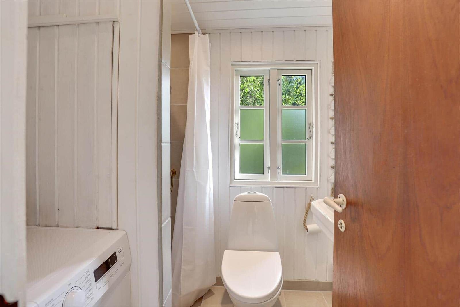 Die gut ausgestattete Küche beinhaltet einen Geschirrspüler, einen Elektro-/Gasherd, einen Backofen, einen Kühlschrank sowie eine Kaffeemaschine und einen Wasserkocher. Eine Gefriermöglichkeit ist ebenfalls vorhanden. Das Duschbad bietet modernen Komfort.