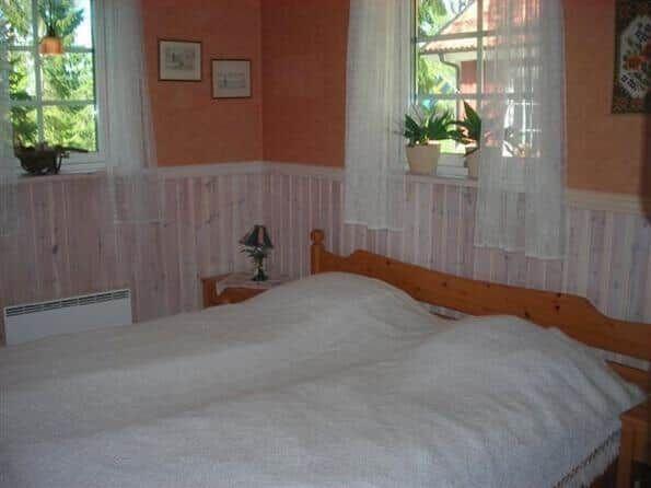 Die beiden komfortablen Ferienhäuser bieten zusammen eine Wohnfläche von etwa 215 m² und sind ideal für bis zu zehn Erwachsene und zwei Kleinkinder. Jedes Haus verfügt über eine voll ausgestattete Wohnküche mit Elektroherd, Backofen, Kühlschrank, Geschirrspüler, Mikrowelle, Kaffeemaschine und Toaster. Ess- und Wohnzimmer mit SAT-TV sind ebenfalls vorhanden. Haus 1 besitzt zusätzlich einen großzügigen Sauna- und Whirlpool-Bereich. Die Schlafzimmeraufteilung umfasst verschiedene Kombinationen von Doppel- und Einzelbetten sowie Gitterbetten in beiden Häusern. Fußbodenheizung in den Bädern und elektrische Heizungen sorgen für Komfort. Rauchen ist nicht gestattet, Haustiere sind erlaubt. Bettwäsche und Handtücher können gegen Gebühr ausgeliehen werden. Eine Endreinigung ist auf Anfrage buchbar. Gemeinschaftlich nutzbare Einrichtungen wie ein Ruderboot, Fahrräder und eine Seeveranda runden das Angebot ab.
