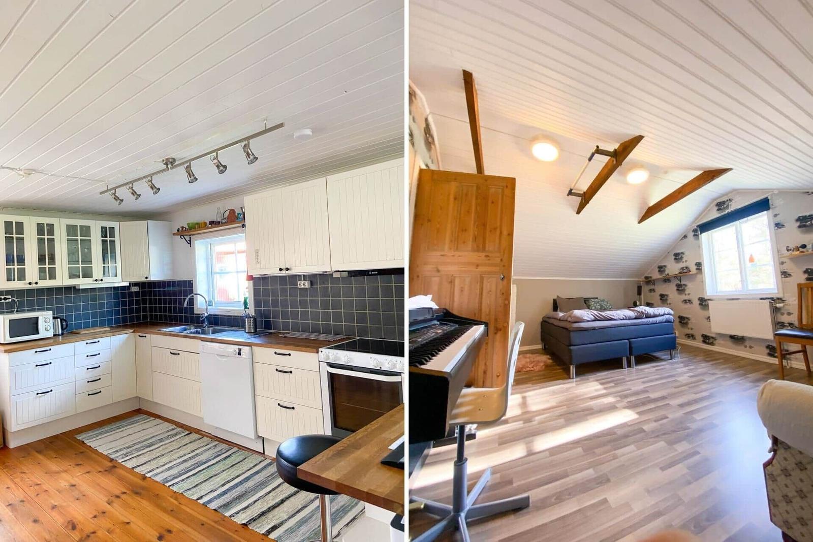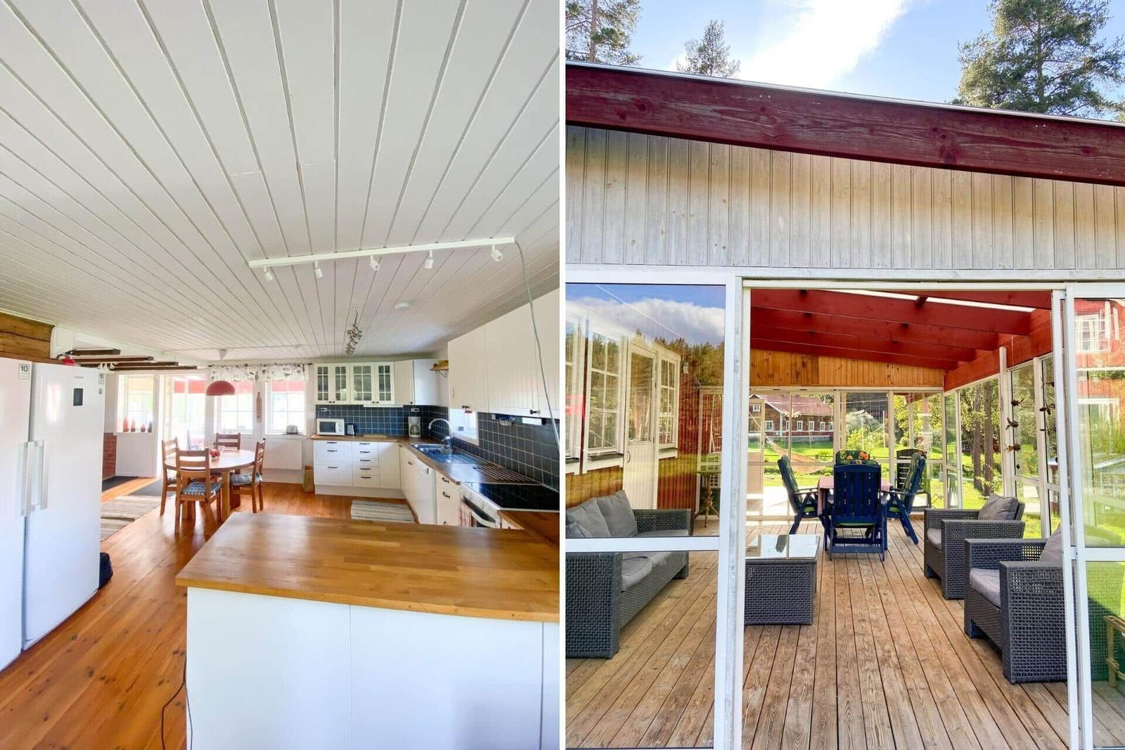 Das Ferienhaus Målilla erstreckt sich über eine Wohnfläche von etwa 130 m² und bietet eine gut ausgestattete Wohnküche mit E-Herd, Backofen, Holzofen, Kühlschrank mit Gefrierfach, Geschirrspüler, Mikrowelle und Kaffeemaschine. Ein gemütlicher Essbereich lädt zu gemeinsamen Mahlzeiten ein. Der große Wohnraum bietet eine entspannende Sitzecke und ist mit einem Fernseher ausgestattet, der schwedische Programme empfängt. Im geräumigen Badezimmer befinden sich zwei Duschen, zwei WCs, ein Doppelwaschbecken sowie eine Waschmaschine und ein Trockner. Die Schlafzimmer im Dachgeschoss verfügen über drei Einzelbetten in einem Raum und ein Doppelbett im zweiten. Ein großer Wintergarten mit Seeblick lädt zum Verweilen ein. Ein Kanu und ein Ruderboot sind ebenfalls vorhanden. Bettwäsche und Handtücher können gegen Aufpreis hinzugebucht werden, und die Endreinigung obliegt dem Mieter. Haustiere sind nicht gestattet.