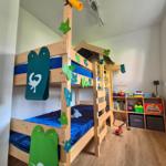 Insgesamt stehen zwei große Doppelbetten, zwei Einzelbetten, ein Abenteuer-Stockbett und zwei Schlafsofas zur Verfügung – ideal für bis zu 10 Personen. Die Schlafzimmer sind hell, freundlich und mit viel Stauraum, Leselampen und Radioweckern ausgestattet. Zwei separate Arbeitsplätze mit höhenverstellbaren Schreibtischen und ergonomischen Stühlen machen das Haus auch zum perfekten Rückzugsort für Workation.