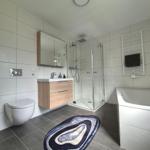 Ab Mitte Dezember lädt die private Sauna (3-4 Personen) im Erdgeschoss zur Erholung ein. Sowohl im Erdgeschoss als auch im Obergeschoss befinden sich neue hochwertig ausgestattete Bäder - mit ebenerdiger Dusche, Glasabtrennung, Handtuchheizkörper und Spiegelschrank. Im Erdgeschoss steht zusätzlich eine Badewanne bereit.