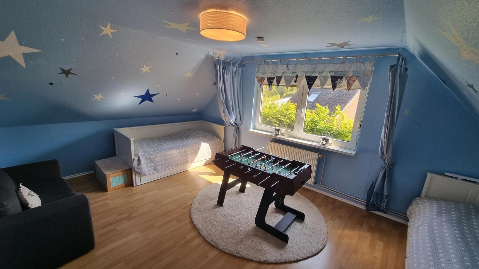 Genießen Sie einen Urlaub voller Komfort. Neben Sauna, gibt es auch einen Außenwhirlpool, den Sie von Frühling bis Herbst nutzen können. (Winter nur bei geeigneter Witterung) Das Haus erstreckt sich über 2 Etagen. Wohnzimmer, Küche, 1 Schlafzimmer und Bad befinden sich im Erdgeschoss, die anderen 3 Schlafzimmer und das 2. Bad Im OG.