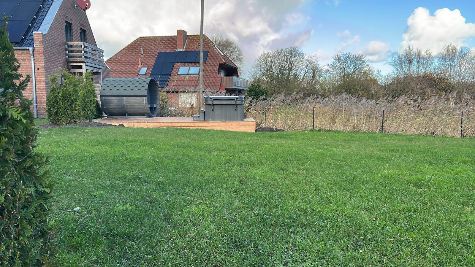 „Friesenblick“ verfügt über ein offenes Raumkonzept im Untergeschoss. Licht und Sicht sind fantastisch. Ein großes Wohn-Esszimmer mit einer maßangefertigten Küche, einer Schlafcouch und großen Fenstern, ein edles Duschbad und ein separates WC bieten Raum zum Entspannen und zum Wohlfühlen. Das riesige Holzdeck vor dem Wohnzimmer lädt bei schönem Wetter zum Sonnenbaden, Essen und Entspannen ein und wenn sich das Wetter einmal von der herben Seite zeigt, dann bildet es eine harmonische Überleitung in die Weite, für die Ostfriesland berühmt ist.