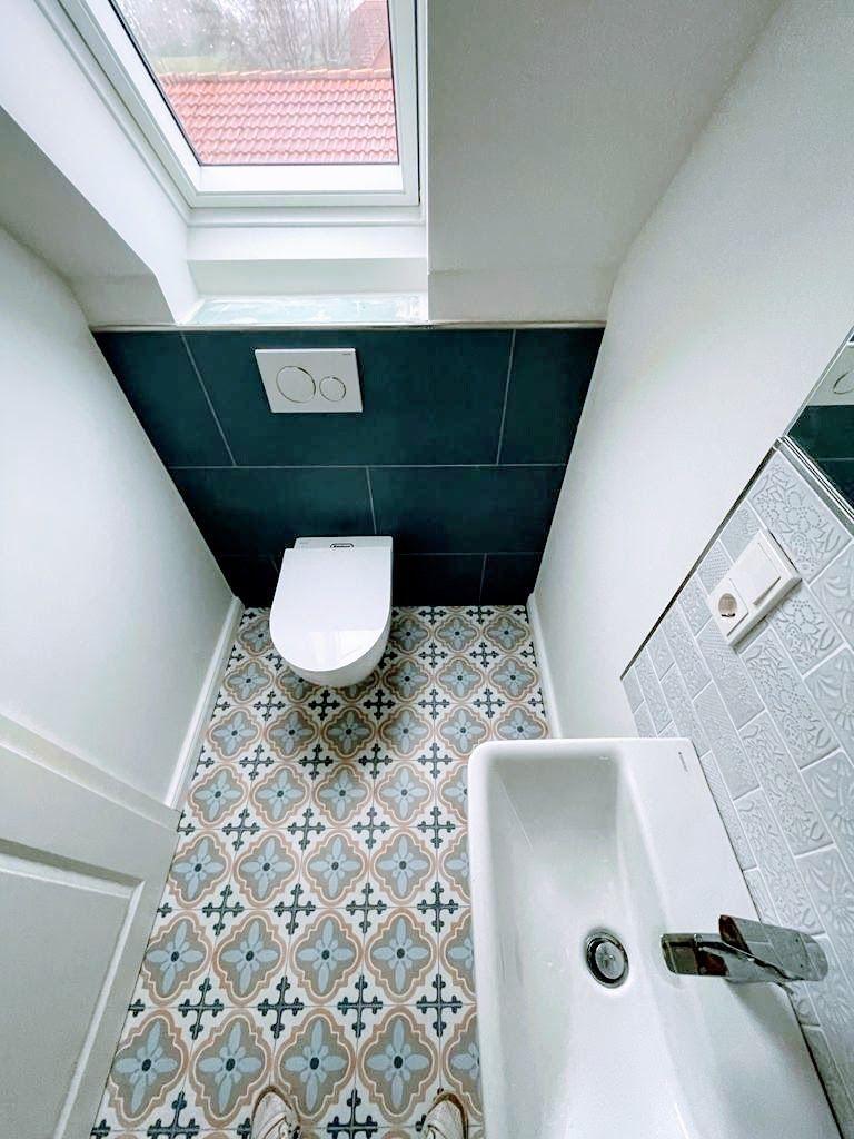 Die Wohnung, eigentlich eine Haushälfte, wurde 2021/22 aufwändig saniert. Die verwendeten Materialien sind hochwertig und geschmackvoll. Einbaumöbel und aufgearbeitete Holzbalken runden das Ambiente ab.