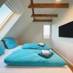 Die individuelle Treppenlösung mit viel Stauraum ist stilvoll und fügt sich harmonisch in das offene Wohnkonzept ein. Weiterhin steht Ihnen ein Hauswirtschaftsraum mit Waschmaschine zur Verfügung. Im Obergeschoss erwarten Sie zwei Schlafzimmer mit der sichtbar gemachten alten Balkenlage. Ein Schlafraum hat einen weiteren Fernseher. Auch hier bieten maßangefertigte Einbaumöbel Platz und schaffen eine gemütliche Atmosphäre. Hier finden Sie auch das zweite WC. Genießen Sie den Blick aus den Fenstern und atmen Sie auf. So fühlt sich „Ankommen“ an.