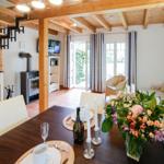 Im Erdgeschoss befindet sich der komfortabel und geschmackvoll möblierte Wohnbereich. Dieser ist ausgestattet mit zwei Sesseln und einer gemütlichen Couch-Garnitur. Mit ein paar Handgriffen lässt sich diese zu einer bequemen Schlafmöglichkeit für zwei Personen umfunktionieren. Zu Ihrer Unterhaltung nutzen Sie das Flachbild-SAT-TV sowie die HiFi-Anlage.