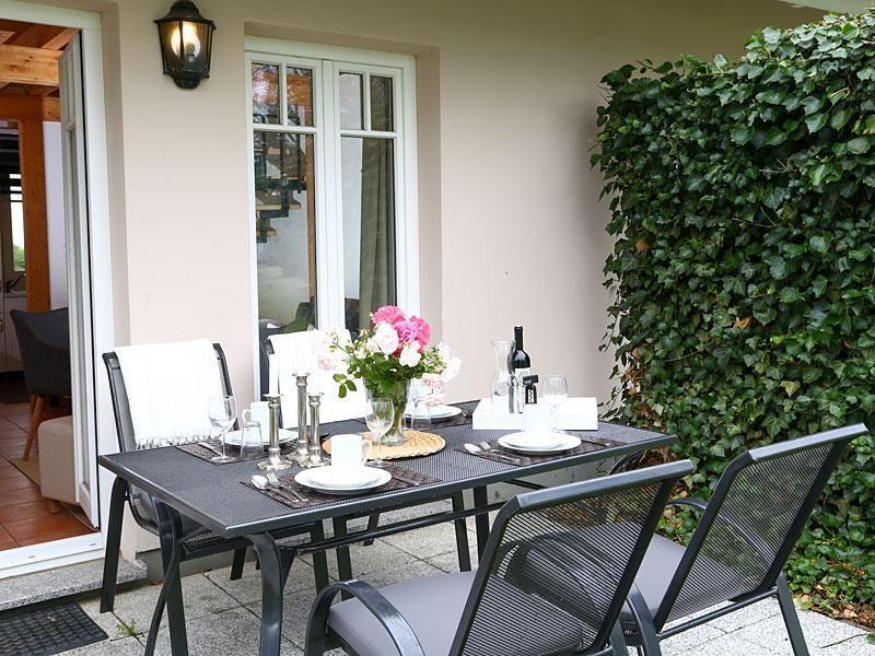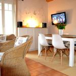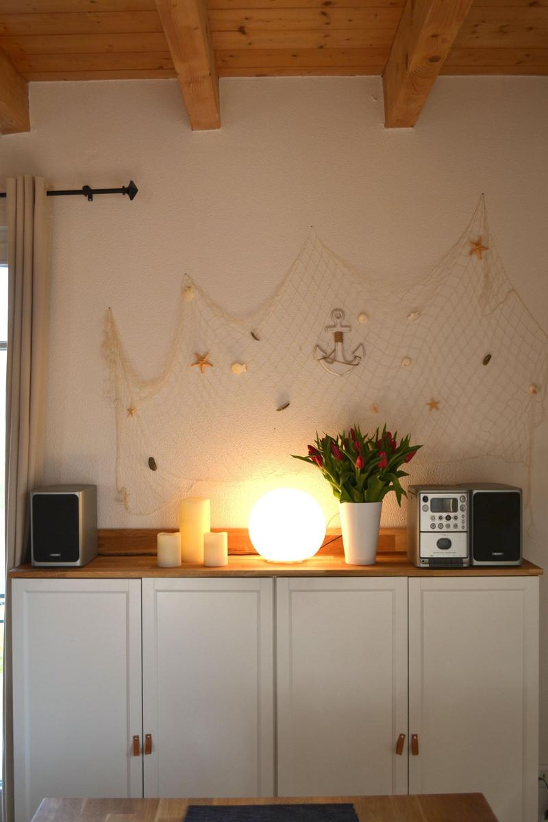 Der Wohnbereich schließt ebenso den großen Esstisch mit 6 Stühlen ein für die gemeinsamen Mahlzeiten.
