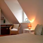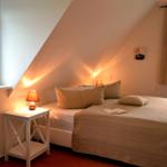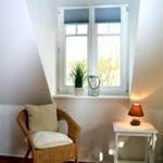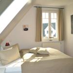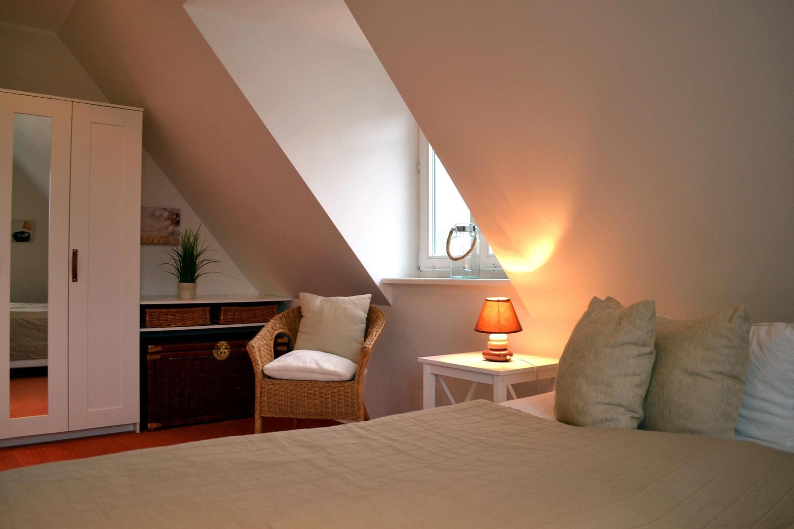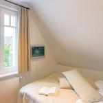 In das Obergeschoss gelangen Sie über eine Wendeltreppe. Hier befinden sich zwei Schlafzimmer, jeweils mit einem komfortablen Doppelbett ausgestattet, eines davon mit einem zusätzlichen Fernsehgerät. Beide Zimmer verfügen über je einen geräumigen Kleiderschrank.