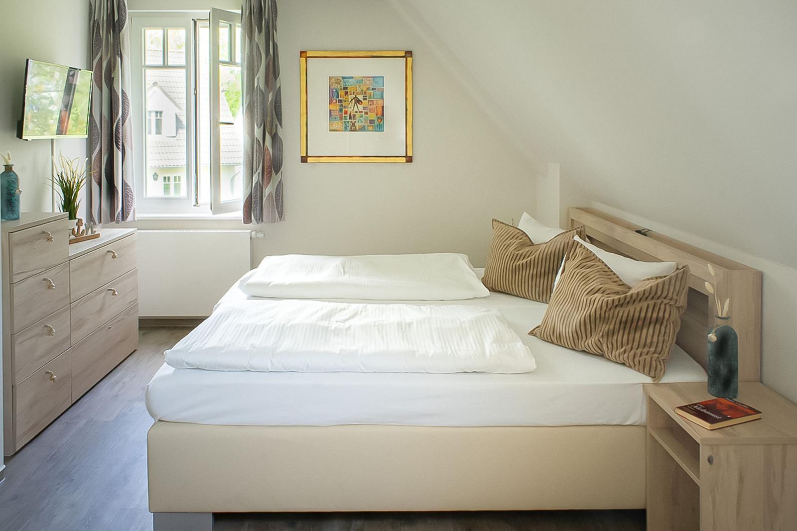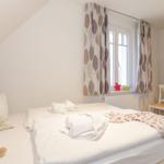 Über eine Wendeltreppe gelangen Sie in das Obergeschoss. Zwei separate Schlafzimmer erwarten Sie hier. Beide Zimmer sind ausgestattet mit jeweils einem Doppelbett sowie einem geräumigen Kleiderschrank für Ihre Urlaubsgarderobe. In einem der Zimmer befindet sich ein zusätzliches Fernsehgerät.