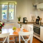 Dem Wohnzimmer schließt sich der moderne und offene Küchenbereich an. Dieser beinhaltet einen großen Esstisch mit 6 Stühlen sowie die voll ausgestattete Küche, in der Sie auf nichts verzichten müssen. Schnell sind Ihre Lieblingsmahlzeiten angerichtet.