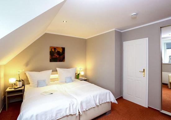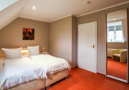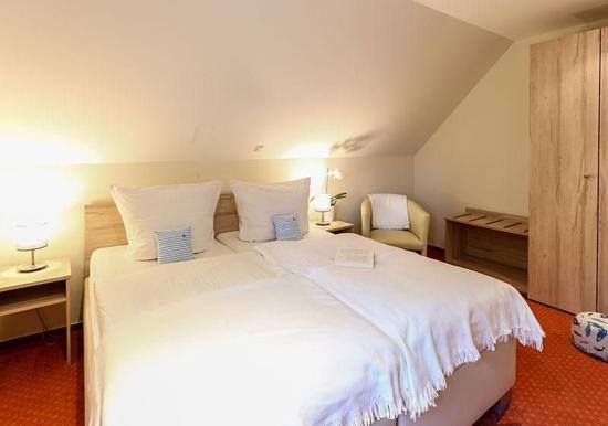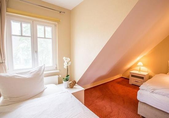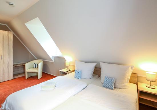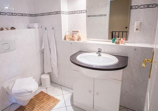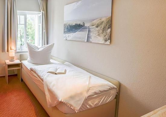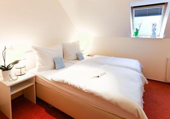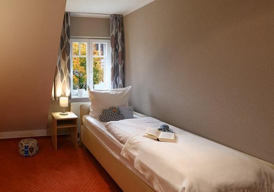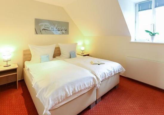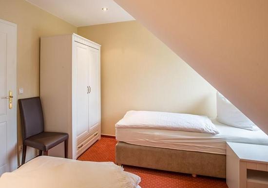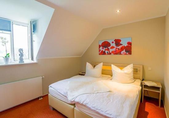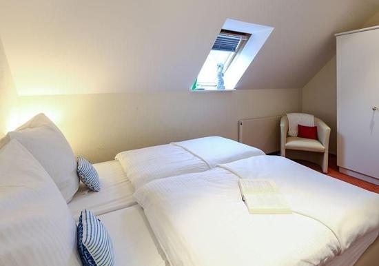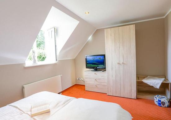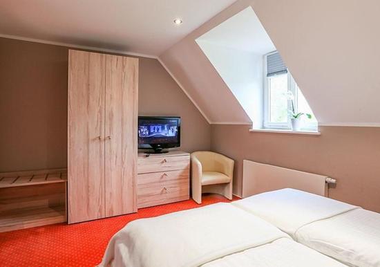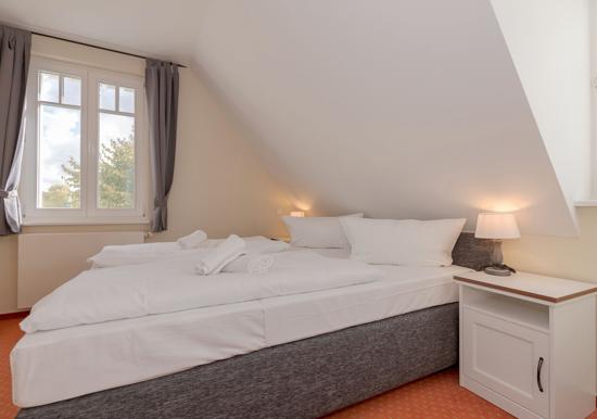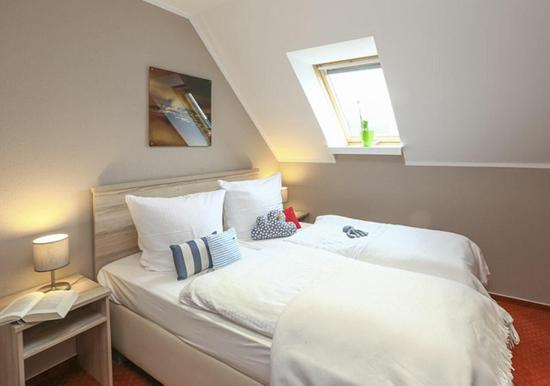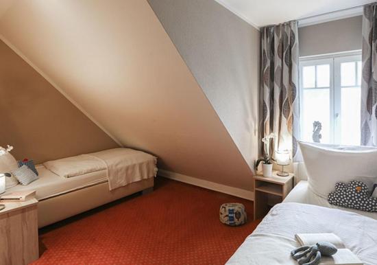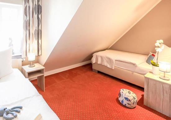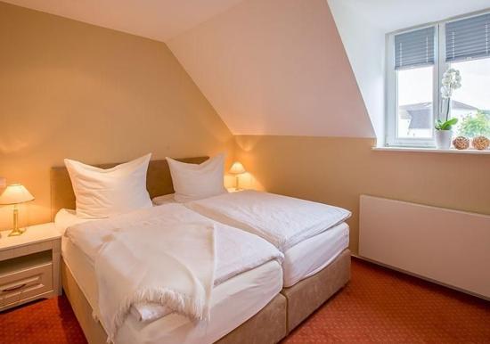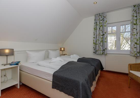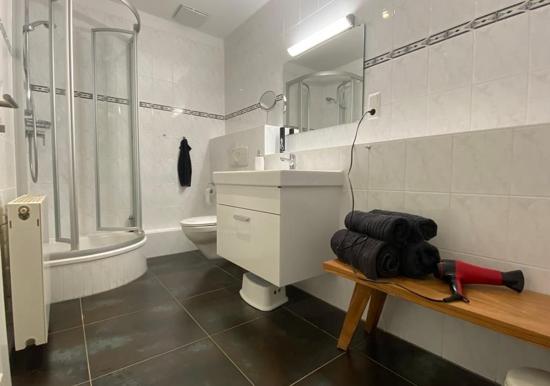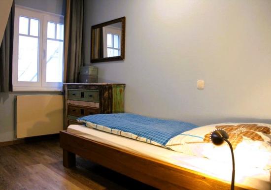 Das zweckmässig eingerichtete Schlafzimmer 1 ist mit einem gemütlichen Doppelbett (200 L x 160 B cm), einem Kleiderschrank, einer Kommode, einem Spiegel, 2 Nachtschränken und einem Fernseher ausgestattet. Im Schlafzimmer/Kinderzimmer befinden sich 2 Einzelbetten, die jeweils zu einem Doppelbett ausgezogen werden können, ein Kleiderschrank und 2 Nachtschränke