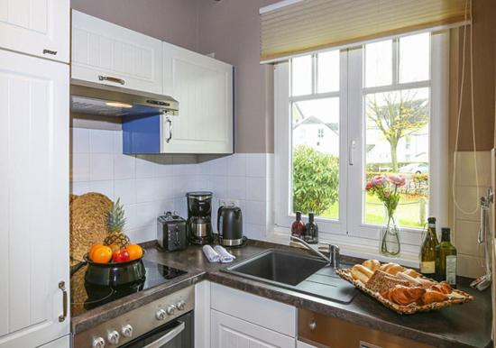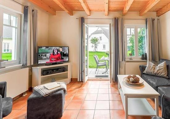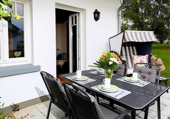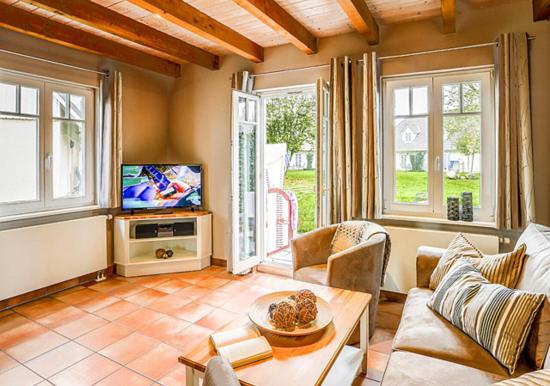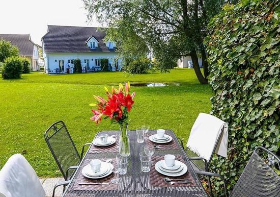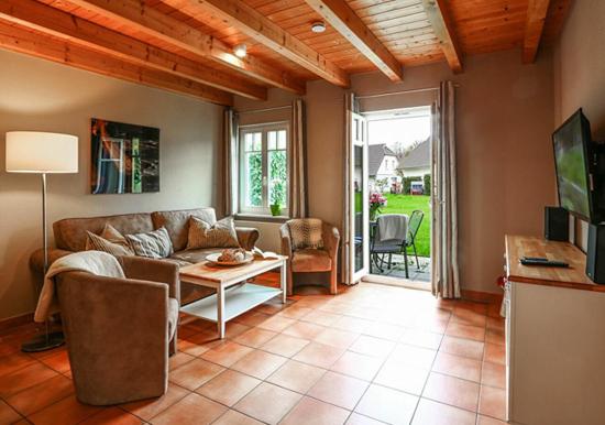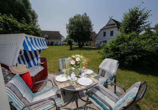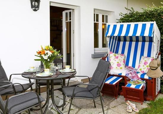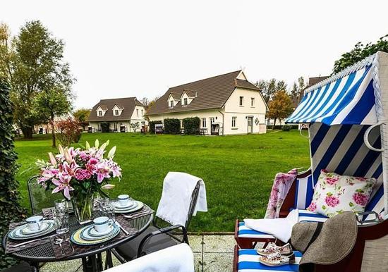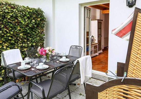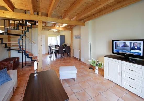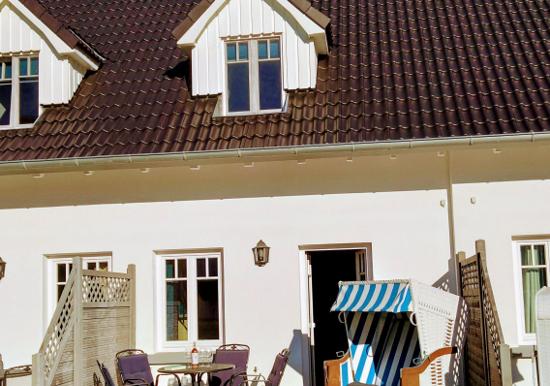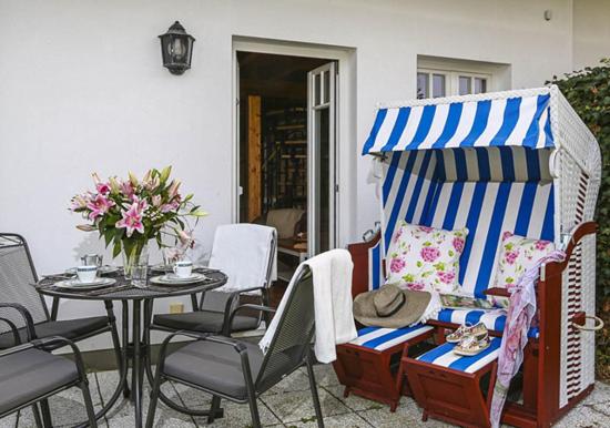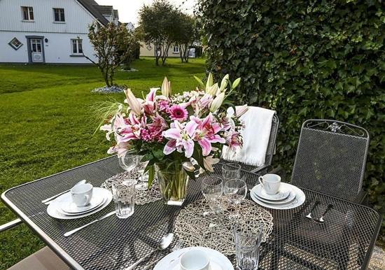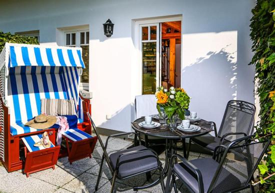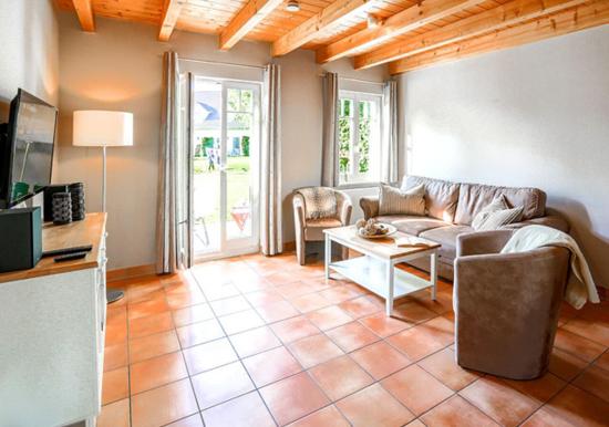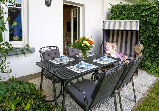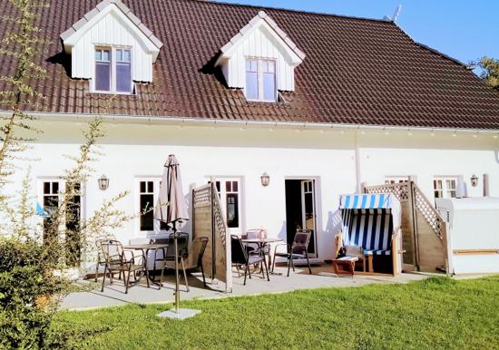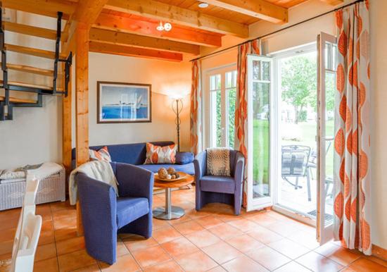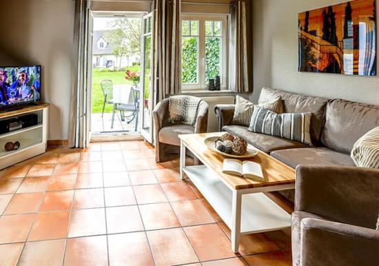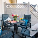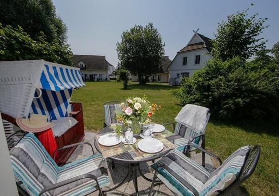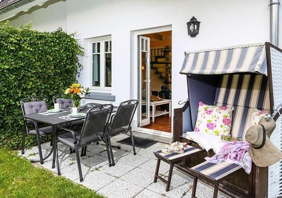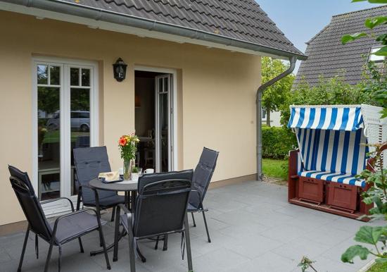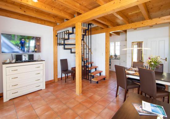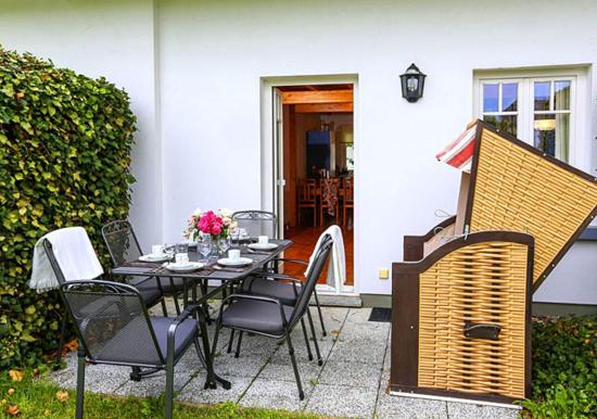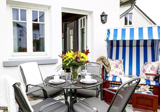 Das Herzstück des Appartements bildet der großzügige Wohn-Essbereich mit der angrenzenden Terrasse und Blick ins Grüne. Auch ein Strandkorb steht auf der Terrasse für Sie bereit.