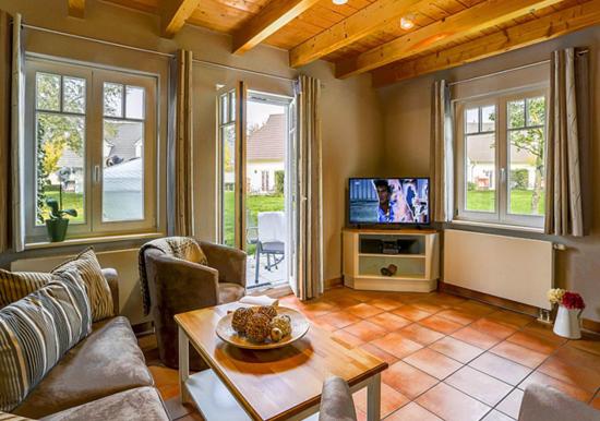 Für kalte Tage lädt ein Kamin (mit Fernbedienung) zu gemütlichen Stunden ein. Auch WLAN steht kostenfrei zur Verfügung.