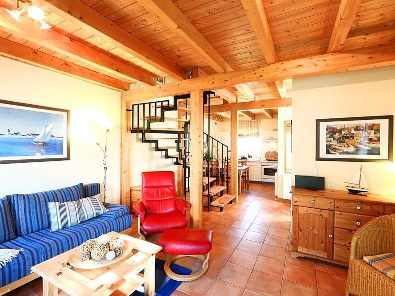 Im Erdgeschoss befindet sich der geschmackvoll möblierte Wohnbereich. Zwei bequeme Sessel und eine Schlafcouch sorgen für ein gemütliches Zusammensein mit der ganzen Familie. Es steht Ihnen ein Flachbild-SAT-TV sowie eine HiFi-Anlage zur Verfügung, einem unterhaltsamen Abend steht nichts im Wege.