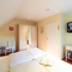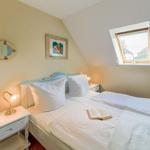 Über eine Wendeltreppe gelangen Sie in das Obergeschoss. Hier befinden sich zwei Schlafzimmer, jeweils eingerichtet mit einem bequemen Doppelbett sowie einem geräumigen Kleiderschrank für Ihre Urlaubsgarderobe.