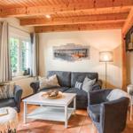 Das lichtdurchflutete und liebevoll möblierte Wohnzimmer ist mit zwei gemütlichen Sesseln und einer Sofa-Garnitur ausgestattet. Hier kann einen gemütlichen Abend verbringen.