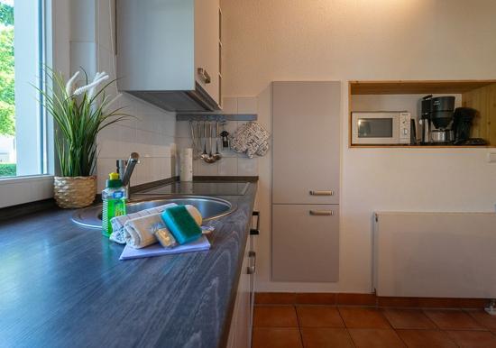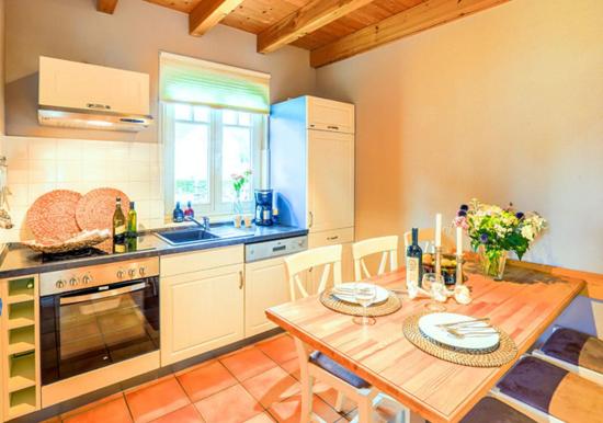 Im Anschluss an den Wohnbereich stoßen Sie auf einen großen Esstisch sowie den offenen Küchenbereich. Die Küche ist modern und komplett ausgestattet, hier fehlt es Ihnen an nichts.