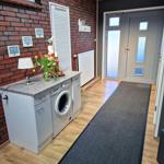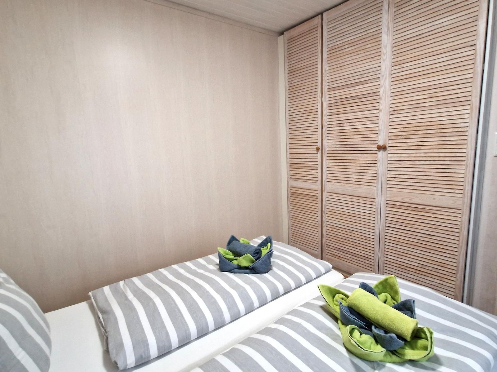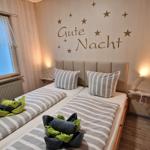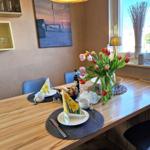 Die Ferienwohnung bietet eine ideale Unterkunft für Erholungssuchende und Familien. Mit zwei Schlafzimmern ausgestattet, verfügt die Wohnung über ein gemütliches Doppelbett und zwei Einzelbetten, die für einen erholsamen Schlaf sorgen. Die moderne Küchenzeile ist perfekt ausgestattet mit Geschirrspüler, Elektro-/Gasherd, Kühlschrank, Kaffeemaschine, Toaster und Wasserkocher, sodass die Selbstversorgung mühelos gelingt. Im hellen Badezimmer erwartet eine bodengleiche Dusche Erholung nach einem aktiven Tag. Für Unterhaltung stehen eine HiFi-Anlage und ein TV zur Verfügung. Die Wohnung ist allergikergeeignet und verfügt über WLAN, um Gästen einen angenehmen Aufenthalt zu garantieren. Ein Esstisch sowie ein komfortables Sofa laden zum Verweilen ein. Ein Parkplatz ist ebenfalls vorhanden, und praktische Annehmlichkeiten wie Waschmaschine und Wäscheständer runden das Angebot ab. Die Ferienwohnung ist der perfekte Rückzugsort für einen entspannten Urlaub.