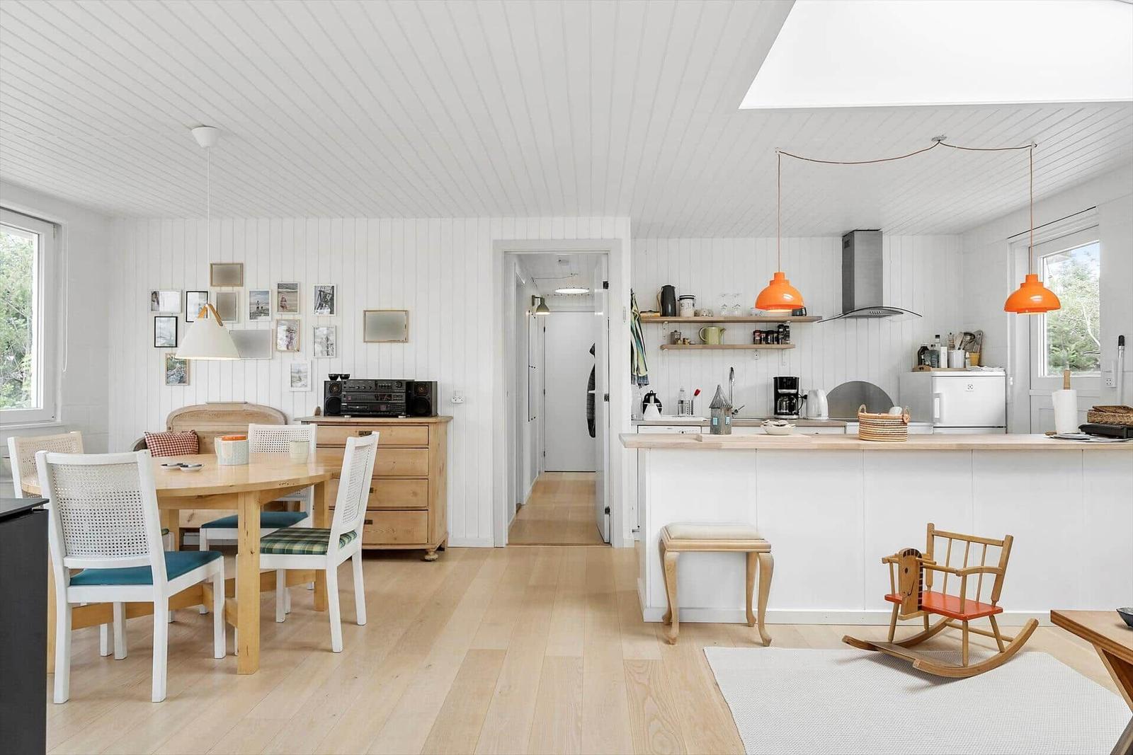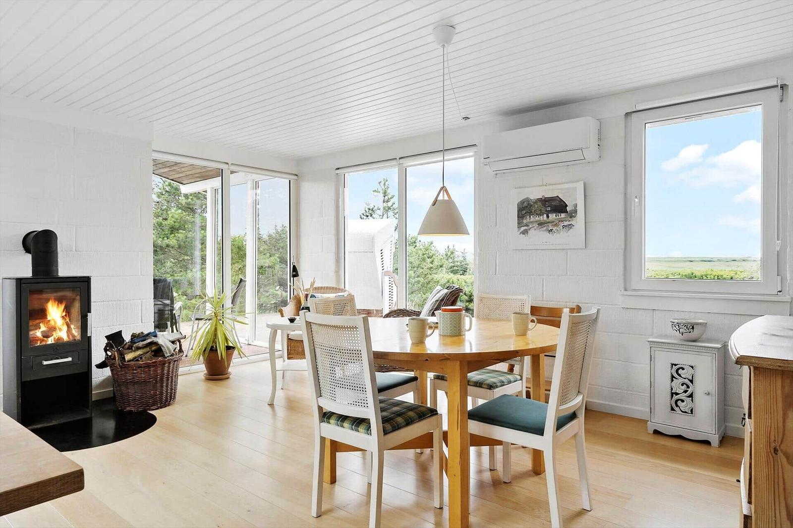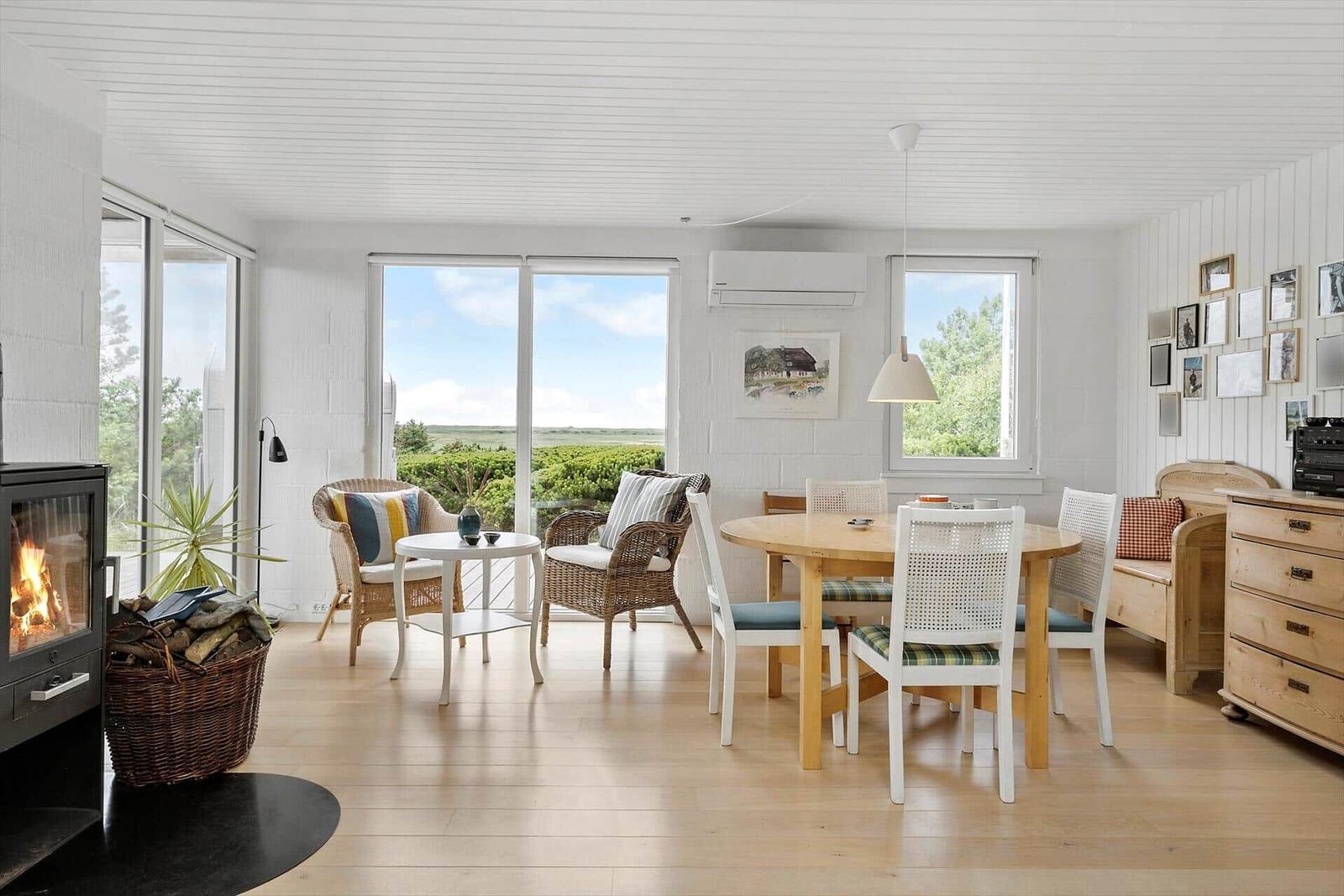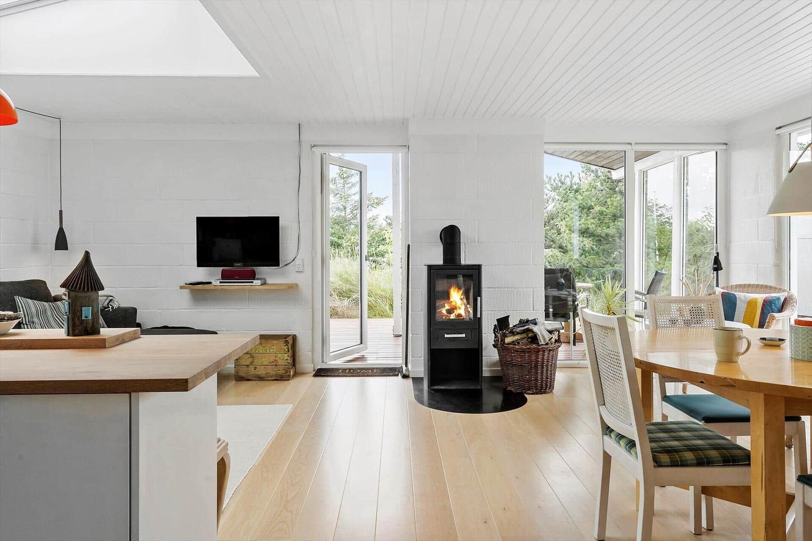 Die Ferienwohnung in Nr. Fjand, Westjütland, bietet auf großzügigen 77 m² Platz für bis zu 4 Erwachsene. Sie besticht durch eine gemütliche Einrichtung, die durch einen Kamin abgerundet wird. Die modernen Annehmlichkeiten umfassen WLAN-Internet, einen Geschirrspüler, einen Elektro- und Gasherd sowie einen Kühlschrank. Für die kleinen Gäste sind ein Kinderhochstuhl und zwei Kinderbetten vorhanden. Das Badezimmer ist mit einer Duschbadewanne ausgestattet. Im Wohnschlafzimmer sorgen ein TV und ein DVD-/Blu-ray-Player für Unterhaltung. Der Wasserkocher und die Kaffeemaschine ermöglichen eine entspannte Kaffeeauszeit. Bei Bedarf sorgt die energieeffiziente Heizung für behagliche Wärme. Die Lage ist ideal, nur 1.250 Meter zum nächsten Strand und 3.500 Meter zu Einkaufsmöglichkeiten, alles eingebettet auf einem großzügigen 1.000 m² Grundstück mit Sandkasten.