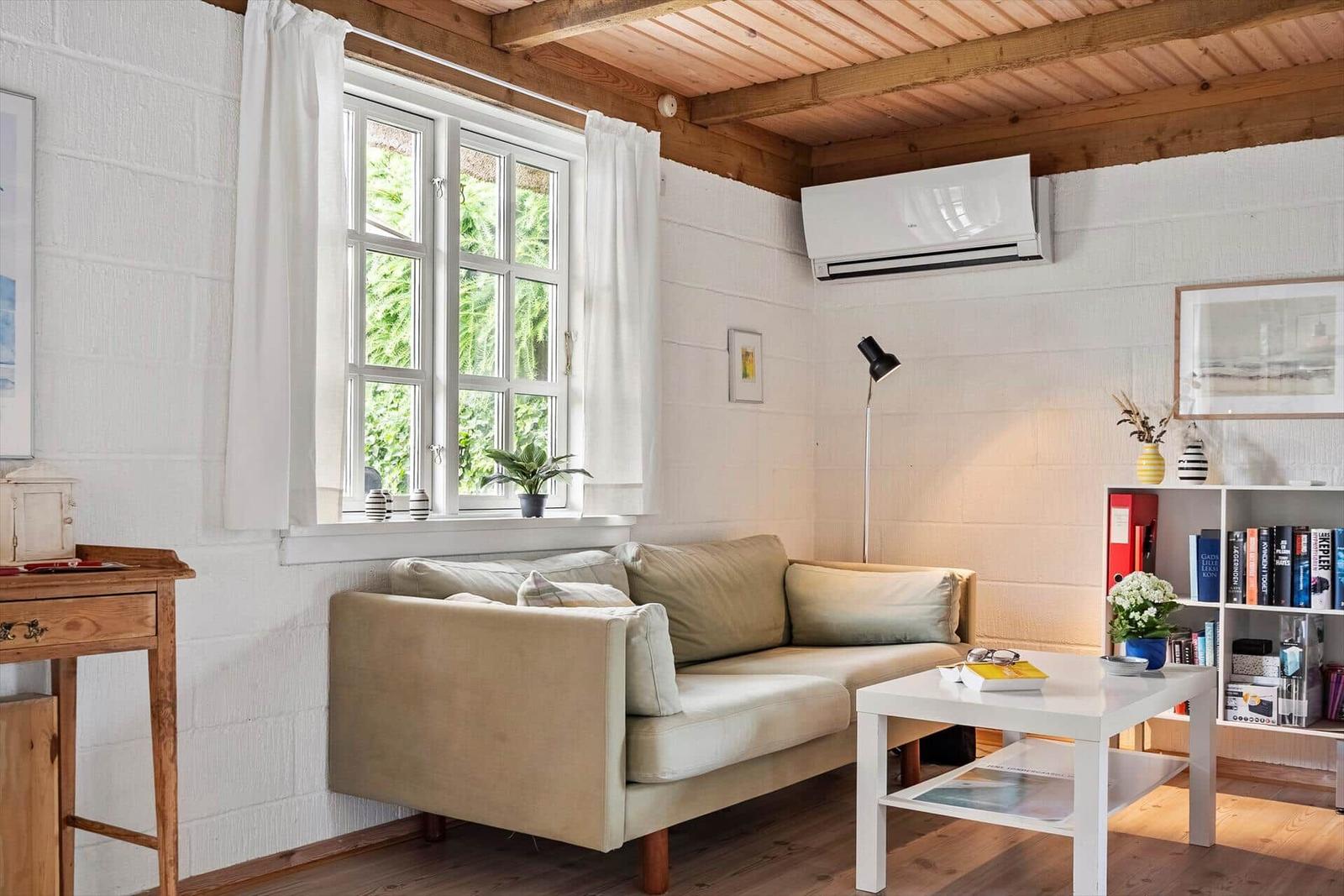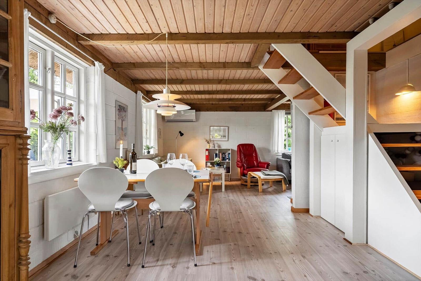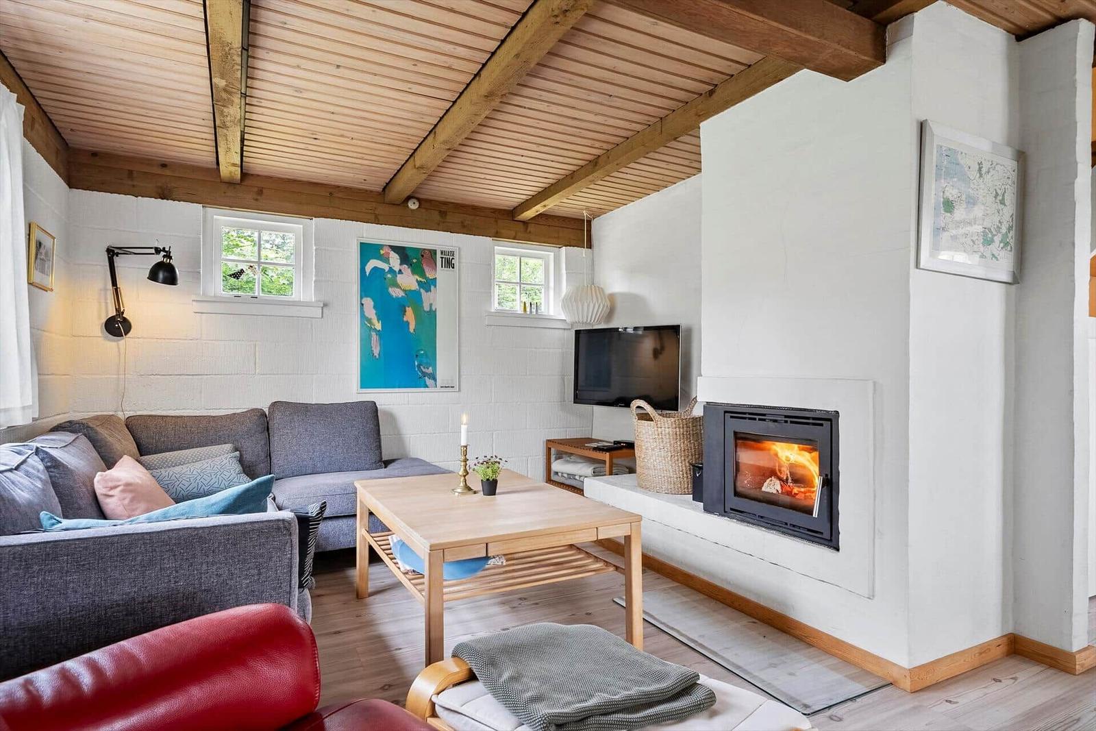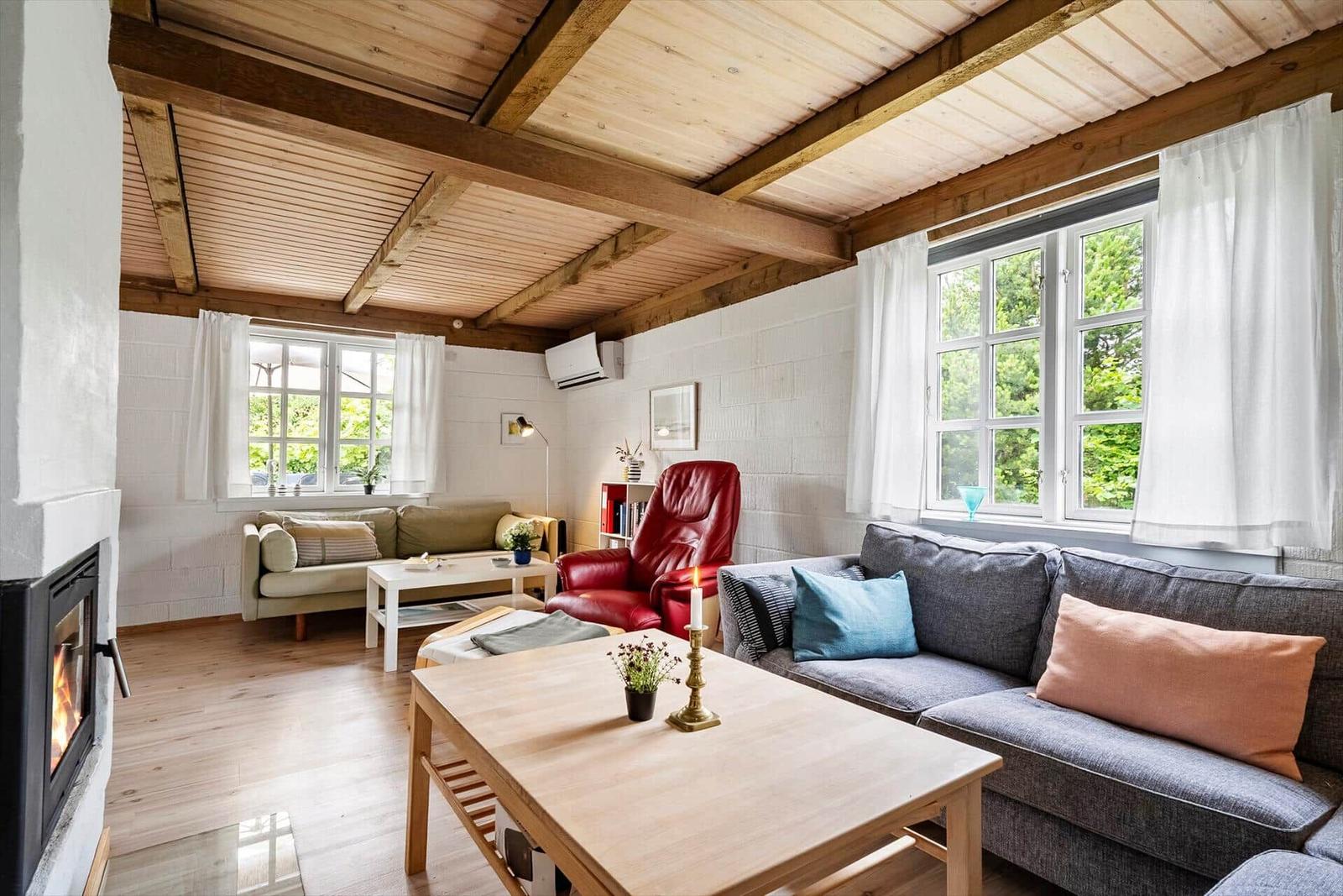 Der komfortable Wohnbereich mit Kamin, Smart-TV und energiesparender Heizung lädt zum Entspannen ein. Praktische Annehmlichkeiten wie Waschmaschine, Wäschetrockner und Bügeleisen runden das Angebot ab. Der nächstgelegene Strand ist nur 1.900 Meter entfernt.