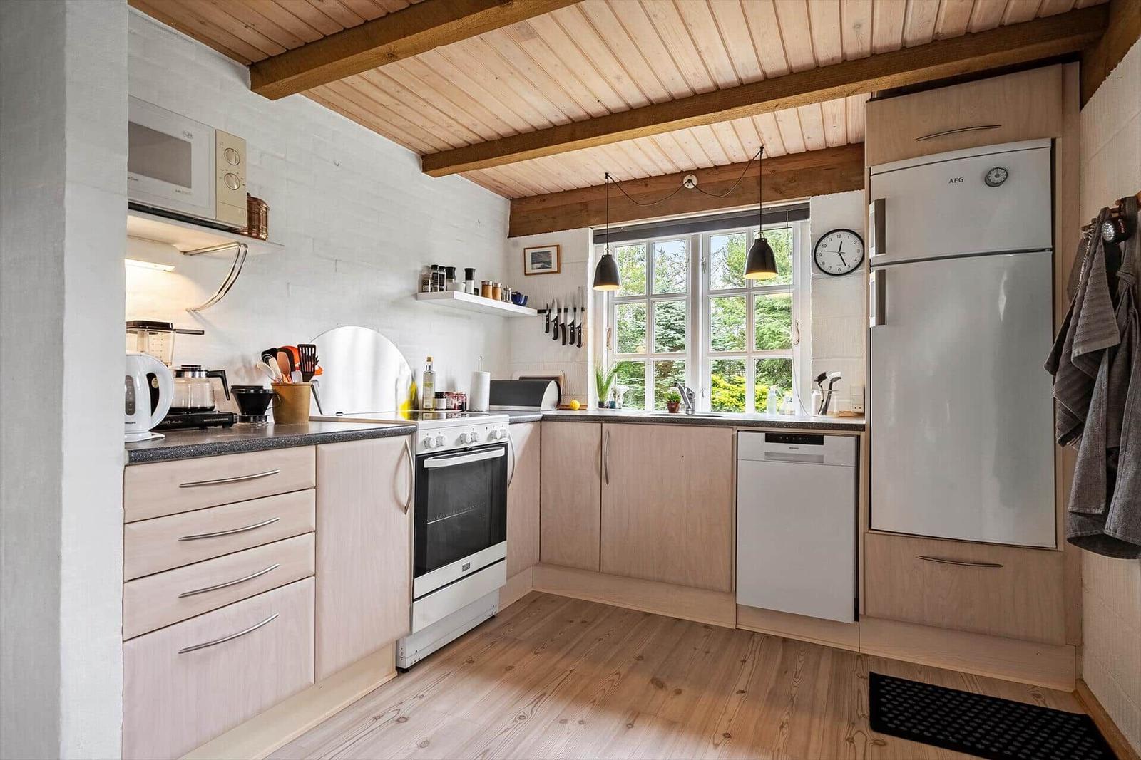 Die gut ausgestattete Küchenzeile ist mit einem Elektro- und Gasherd, Geschirrspüler, Mikrowelle, Kühlschrank, Kaffeemaschine und Wasserkocher versehen, um kulinarische Wünsche zu erfüllen. Für die Kleinen stehen ein Kinderhochstuhl und kinderfreundliche Elemente zur Verfügung.