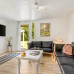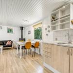 Die Ferienwohnung in Fjand bietet eine perfekte Harmonie aus Komfort und Funktionalität. Sie verfügt über zwei gut ausgestattete Schlafzimmer, darunter ein Doppelbett und zwei Einzelbetten, ideal für Familien oder Paare. Die helle und einladende Atmosphäre wird durch eine offene Küchenzeile ergänzt, die mit einem Elektro-/Gasherd, Backofen, Mikrowelle, Kühlschrank und Kaffeemaschine ausgestattet ist. Der Wohnbereich ist einladend und mit einem Smart-TV sowie Fußbodenheizung ausgestattet, was für angenehme Gemütlichkeit sorgt. Das moderne Duschbad bietet zusätzlichen Komfort. Für den optimalen Aufenthalt stehen WLAN, Waschmaschine, Wäschetrockner und ein Parkplatz zur Verfügung. Eine große Terrasse lädt zum Entspannen im Freien ein. In der ruhigen Umgebung lässt sich die Natur in vollen Zügen genießen – der ideale Ort für eine erholsame Auszeit.