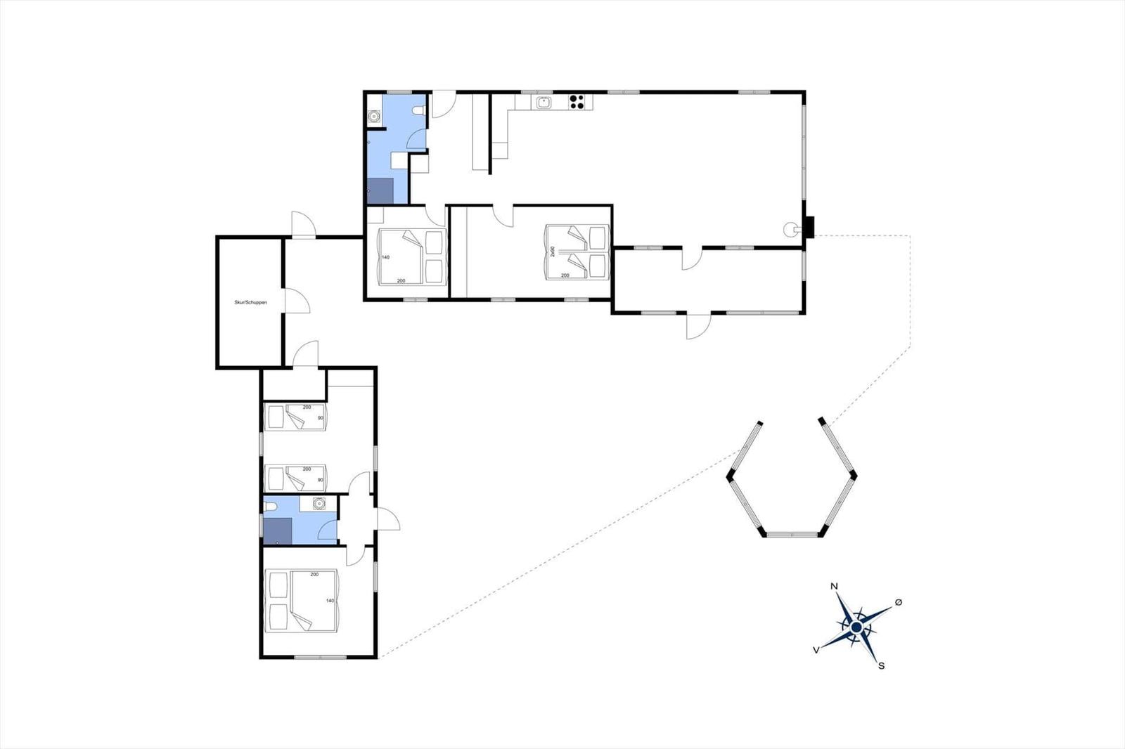 Diese geschmackvoll gestaltete Ferienwohnung bietet insgesamt vier Schlafzimmer, darunter zwei Doppelbetten und zwei Einzelbetten, sowie zwei moderne Badezimmer, die ideal für den gemeinsamen Urlaub zweier Familien geeignet sind. Eine offene Küche, ausgestattet mit einem Elektro-/Gasherd mit vier Kochzonen, Geschirrspüler, Backofen, Mikrowelle, Kühlschrank und Kaffeemaschine, sorgt für hervorragende Kochbedingungen. Der großzügige Wohnbereich mit großen Giebelfenstern und Kaminofen lädt zum Entspannen ein. Ein Wintergarten mit Esstisch und Liegefläche ergänzt den Raum. Hochwertige Unterhaltung wird durch einen Smart-TV mit Streaming-Möglichkeiten garantiert. Zusätzliche Annehmlichkeiten umfassen WLAN, Fußbodenheizung, eine Waschmaschine sowie einen Wäschetrockner. Im Außenbereich stehen Terrassen mit Sitzmöglichkeiten und ein geflegter Gartenpavillon zur Verfügung, der auch an kühlen Abenden ein behagliches Ambiente bietet.