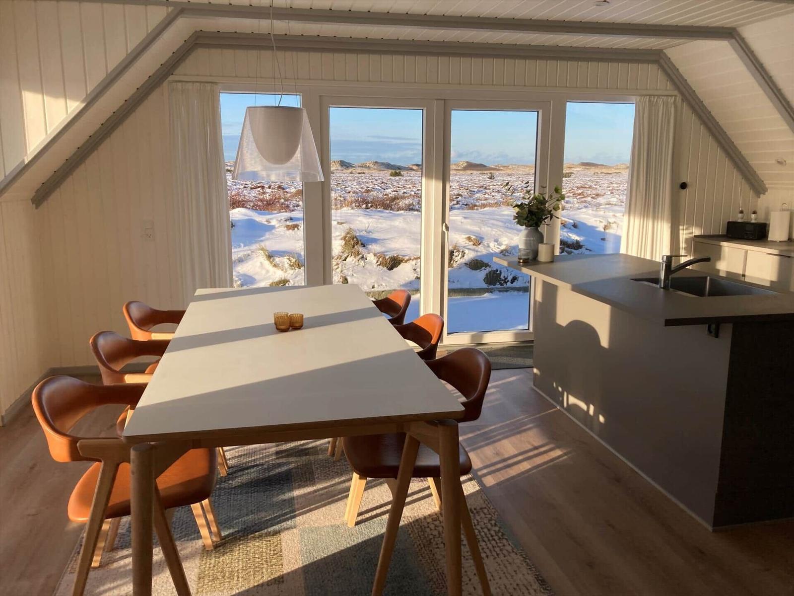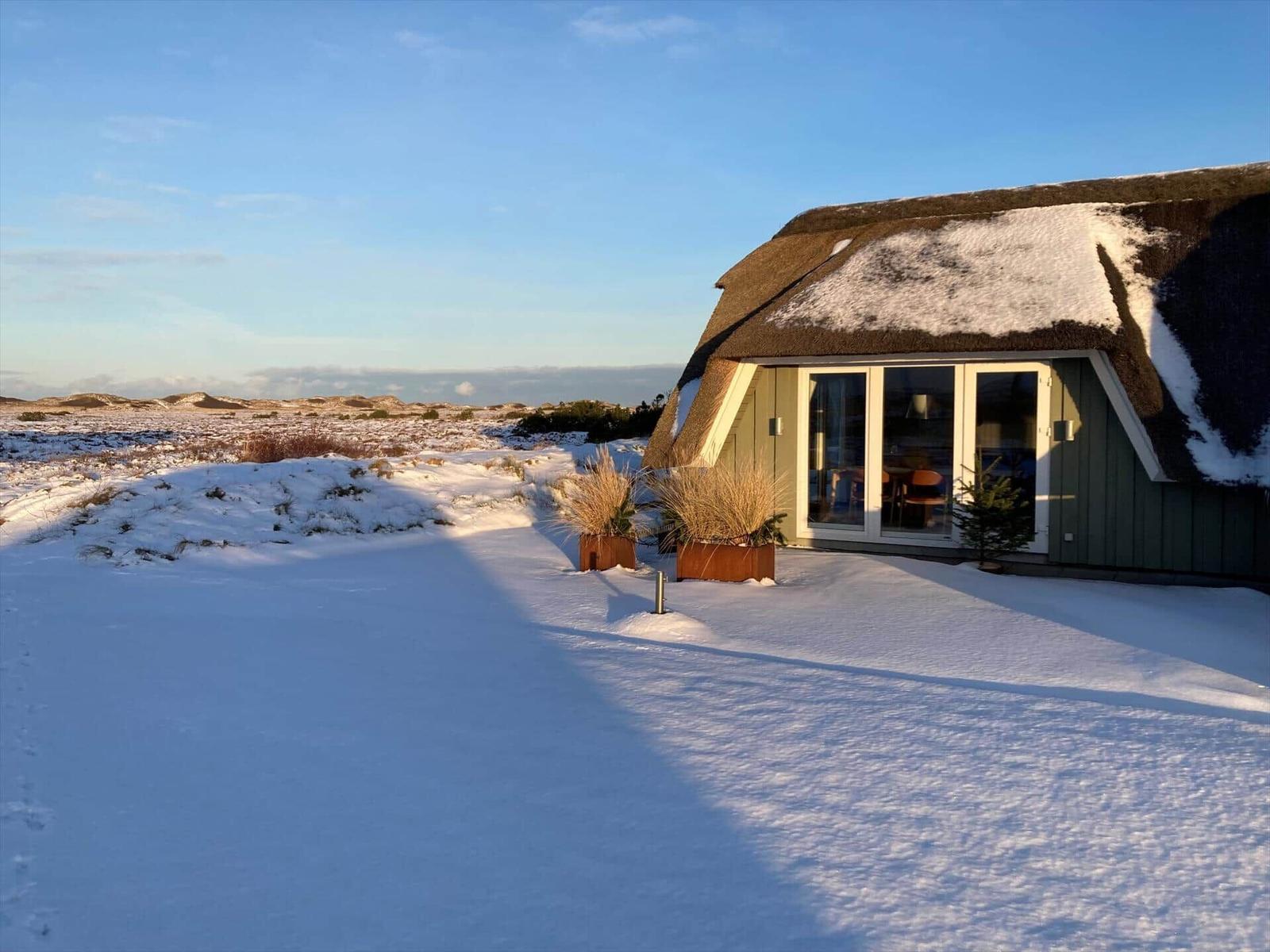 Die Ferienwohnung in einem charmanten reetgedeckten Haus bietet eine stilvolle und einladende Atmosphäre. Mit drei Schlafzimmern, in denen jeweils ein Doppelbett steht, und einem geräumigen Duschbad ist ausreichend Platz für Entspannung gegeben. Der offene Wohnbereich vereint das moderne Konzept einer Küche mit Esstisch und einem Wohnraum, der mit bequemen Sitzmöbeln sowie einem Kaminofen ausgestattet ist. Die Küche lässt keine Wünsche offen: WLAN, Geschirrspüler, Elektro-/Gasherd, Mikrowelle, Kühlschrank, Gefriermöglichkeit und Kaffeemaschine stehen zur Verfügung. Unterhaltung finden Gäste dank eines Smart-TVs, DVD-/Blu-Ray-Players und einem Wäschetrockner. Fußbodenheizung sorgt für wohlige Wärme. Die ruhige Lage am Ende einer Sackgasse bietet einen herrlichen Ausblick auf die umliegende Natur und die geschützten Dünen. Ideal für entspannte Stunden oder aktive Tage am nahegelegenen Strand.