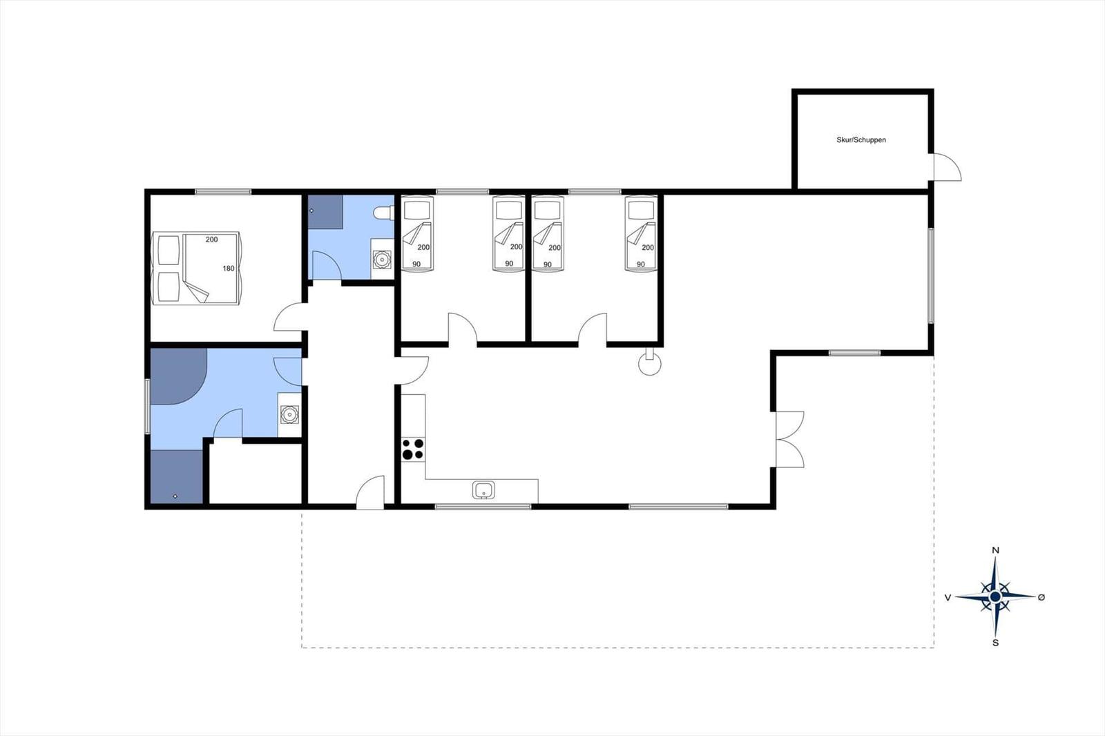 Zur Ausstattung gehören zudem moderne Annehmlichkeiten wie eine Waschmaschine, Spülmaschine und Wäschetrockner. Entspannung bietet die Sauna, und auch WLAN ist vorhanden. Die Lage ist ideal, mit nur 400 Metern bis zum nächsten Strand und 3.600 Metern bis zur nächsten Einkaufsmöglichkeit. Das großzügige Grundstück von 1.315 m² rundet das Angebot perfekt ab.