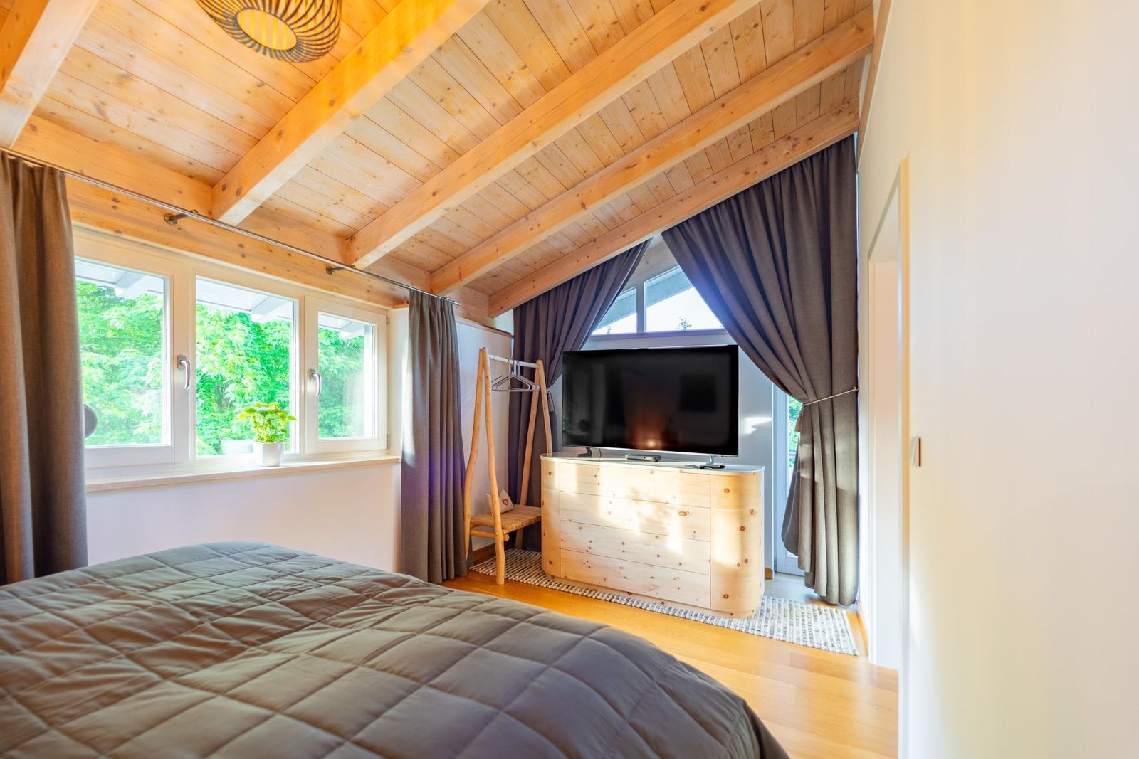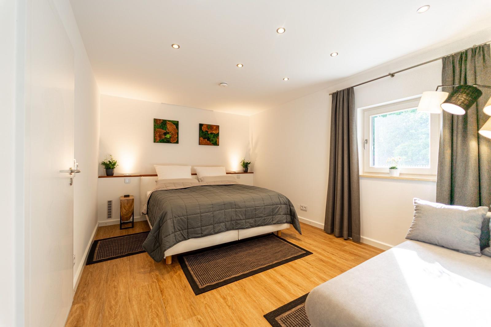 Die Ferienwohnung bietet ein modernes und komfortables Ambiente, ideal für entspannte Aufenthalte. Sie verfügt über 2 einladende Schlafzimmer mit jeweils einem Doppelbett sowie ein Kinderbett im Wohnschlafzimmer. Die separate Küche ist mit einem Geschirrspüler, Elektro-/Gasherd, Backofen, Mikrowelle, Kühlschrank, Kaffeemaschine, Espressomaschine und Toaster ausgestattet und lässt keine Wünsche offen. Im großzügigen Badezimmer findet sich eine bodengleiche Dusche mit Fenster sowie ein Gäste-WC. Die Fußbodenheizung sorgt für wohlige Wärme. In dem gemütlichen Wohnbereich, ausgestattet mit Sofa und Sessel, lädt ein Kamin/Kachelofen zum Entspannen ein. WLAN mit 100 MBit/s ermöglicht beste Konnektivität. Allergikerfreundliche Ausstattung, ein Parkplatz, sowie zahlreiche Extras wie HiFi-Anlage und Minibar runden das Angebot ab. Reinigungs- und Startersets sind ebenfalls vorhanden, um den Aufenthalt so angenehm wie möglich zu gestalten.