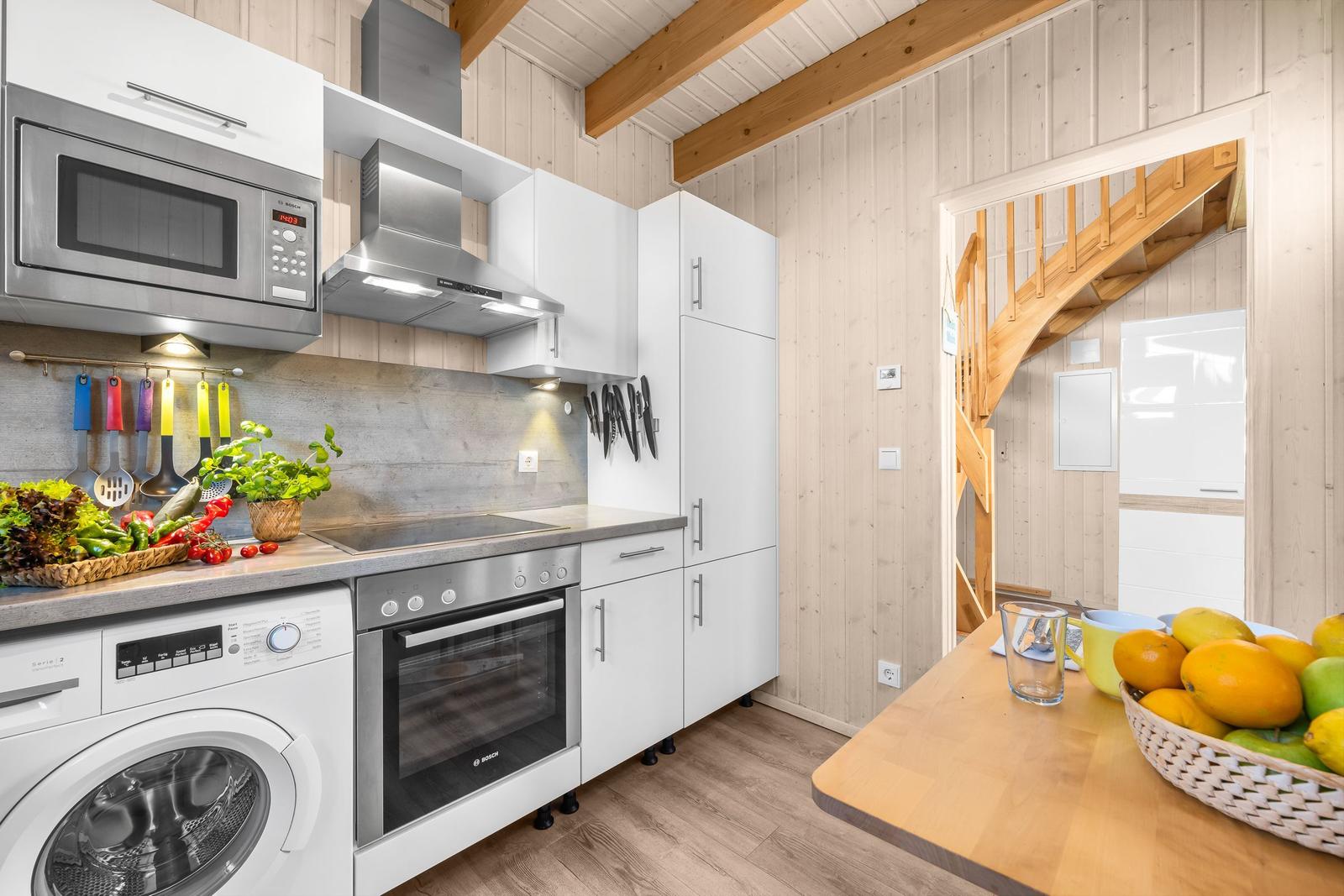 Willkommen in dieser großzügigen Ferienwohnung, die mit einer Vielzahl an Annehmlichkeiten überzeugt. Die separate Küche ist mit einem Geschirrspüler, einem Elektro-/Gasherd, einem Kinderhochstuhl und einer Mikrowelle ausgestattet. Im Wohnschlafzimmer können Sie es sich vor dem Kamin / Kachelofen gemütlich machen und Filme auf dem DVD- / Blu Ray-Player oder dem TV genießen. Die Wohnung verfügt zudem über 2 Badezimmer mit Duschbad, Badewanne und Haartrockner. Im Schlafzimmer finden Sie 1 Doppelbett, 3 Einzelbetten und eine Schlafcouch. WLAN, ein Parkplatz, eine Waschmaschine, ein Wasserkocher, ein Wäscheständer und ein Staubsauger gehören ebenfalls zur Ausstattung. Genießen Sie zudem den Sonnenschirm auf der privaten Terrasse. Diese Ferienwohnung bietet alles, was Sie für einen entspannten Aufenthalt brauchen!