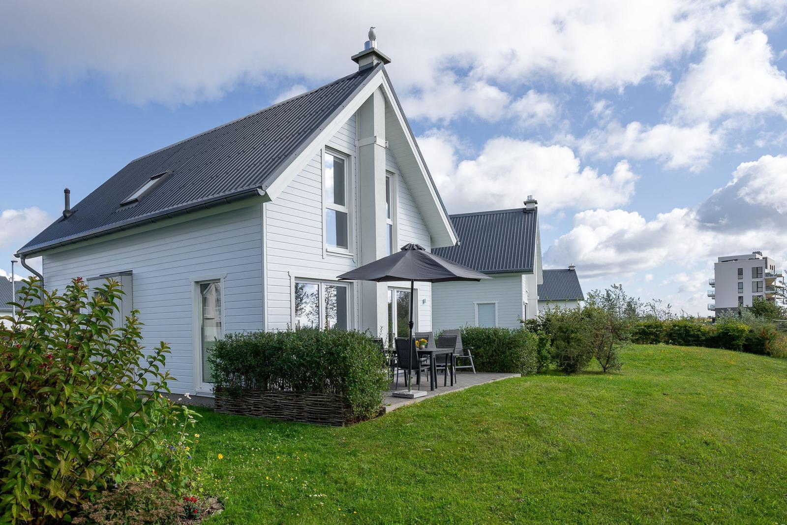 Die ruhige Lage und der sonnige Außenbereich mit einem Sonnenschirm laden zum Entspannen ein.