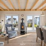 Die außergewöhnlich gute Aussicht auf das Meer und die umgebende Landschaft ist ein herausragendes Merkmal dieser Wohnung. Von der Terrasse aus genießen Sie nicht nur den Blick auf das Wasser, sondern profitieren auch von einem eigenen Strandkorb, Sonnenliegen, einem Sonnenschirm und einem Elektrogrill – ideale Voraussetzungen für erholsame Stunden im Freien. Der Strand mit feinem Sand ist lediglich rund 700 Meter entfernt und ermöglicht jederzeit spontane Badeausflüge oder lange Spaziergänge an der Ostsee. Der offene Wohnbereich, angrenzend an die Terrasse, schafft eine wohlige Atmosphäre. Hier sorgt ein Kaminofen für behagliche Stunden, besonders an kühleren Tagen, und ein Smart-TV für Unterhaltung. Alle Fenster sind mit Sichtschutz versehen, sodass Sie jederzeit Ihre Privatsphäre genießen können. Die offene Küche mit Essbereich ist voll ausgestattet und bietet moderne Geräte wie eine Mikrowelle, eine Spülmaschine, einen Wasserkocher, eine Kaffee- und Espressomaschine (Senseo und Nespresso) und einen Toaster. Umfangreiches Geschirr, Besteck und Küchenutensilien stehen zur Verfügung, sodass Sie alle Mahlzeiten bequem selbst zubereiten können. Der angrenzende Essbereich verfügt über einen Esstisch, der sich hervorragend für gemeinsame Mahlzeiten oder Spieleabende eignet. Zwei Schlafzimmer sorgen für eine angenehme Nachtruhe. In einem Schlafzimmer befindet sich ein Doppelbett (180x200cm), im anderen ebenfalls ein Doppelbett (160x200cm) mit Smart-TV. Beide Schlafzimmer verfügen über je einen Kleiderschrank und Verdunkelungsmöglichkeiten, sodass Sie nachts vollkommen entspannen können. Die Ferienwohnung ist mit zwei Badezimmern ausgestattet, eines davon mit Dusche, das andere mit Whirlwanne. Beide Badezimmer verfügen über einen Föhn und einen Kosmetikspiegel. Ein besonderes Highlight ist die Infrarotkabine, ebenfalls in einem der Bäder gelegen, die den Gästen der Ferienwohnung zur Verfügung steht und den Aufenthalt durch einen zusätzlichen Wellnessfaktor bereichert. Für Komfort im Alltag sorgen Fußbodenheizung, eine Waschmaschine, WLAN, ein Wäscheständer sowie ein Staubsauger. Auch eine Erstausstattung ist vorhanden. Zum Objekt gehört ein kostenloser Privatparkplatz, sodass die Anreise mit dem Auto problemlos möglich ist. Die Ferienwohnung befindet sich in der Ferienanlage OstseeResort Olpenitz und ist ein idealer Ausgangspunkt für Ausflüge zu touristischen Attraktionen, kulturellen Veranstaltungen sowie für sportlich Aktive und Genießer.