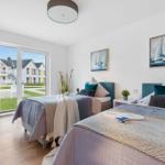 Das Ferienhaus Kaptains Strandhuus in Olpenitz bietet einen einladenden Außenbereich, der zum Entspannen einlädt. Eine möblierte Terrasse mit Blick auf die Landschaft ist ideal für gesellige Abende. Gartenmöbel und ein Elektrogrill stehen bereit, um gemeinsam die frische Luft zu genießen. Um das Haus herum erstreckt sich eine Rasenfläche, die zusätzliche Möglichkeiten für Aktivitäten im Freien bietet. Die Lage des Hauses, nur wenige Meter vom Meer entfernt, ermöglicht schnellen Zugang zu den umliegenden Stränden. In dieser gemeinschaftlichen Ferienanlage stehen zudem zahlreiche Freizeitmöglichkeiten zur Verfügung, sodass der Aufenthalt abwechslungsreich und erholsam gestaltet werden kann. Ein kostenloser Privatparkplatz direkt am Haus sorgt für weiteren Komfort.