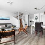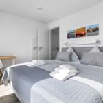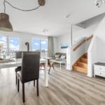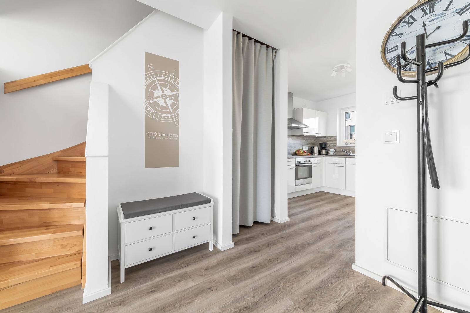 Das Ferienhaus Seestern in Olpenitz bietet auf 99 m² ein stilvolles Zuhause für bis zu vier Gäste. Die Unterkunft erstreckt sich über zwei Etagen und umfasst zwei gemütliche Schlafzimmer, die erholsamen Schlaf gewährleisten. Das offene Wohnzimmer mit Kaminofen lädt zu entspannten Abenden ein und der Essbereich ermöglicht gesellige Mahlzeiten. Die moderne, voll ausgestattete Küche verfügt über Induktionsherd, Backofen, Geschirrspüler und diverse Kleingeräte sowie Geschirr für den täglichen Bedarf. Das großzügige Badezimmer ist mit bodengleicher Dusche, Badewanne mit Whirlfunktion und Haartrockner ausgestattet. Ein separates Gäste-WC sorgt für zusätzlichen Komfort. Ein besonderes Highlight ist die private finnische Sauna zur Entspannung. Familien profitieren zudem von einem Babybett und Hochstuhl. Das Ferienhaus ist ein Nichtraucherobjekt, haustierfreundlich und bietet einen kostenlosen Privatparkplatz in der Nähe.