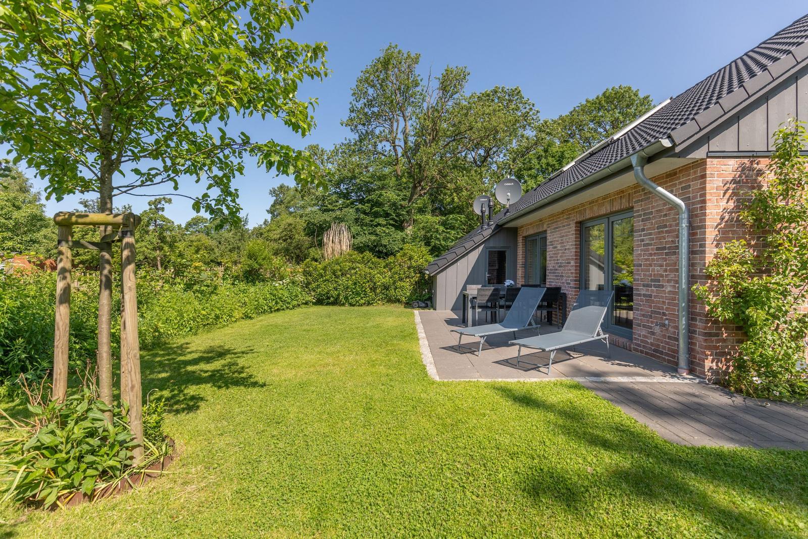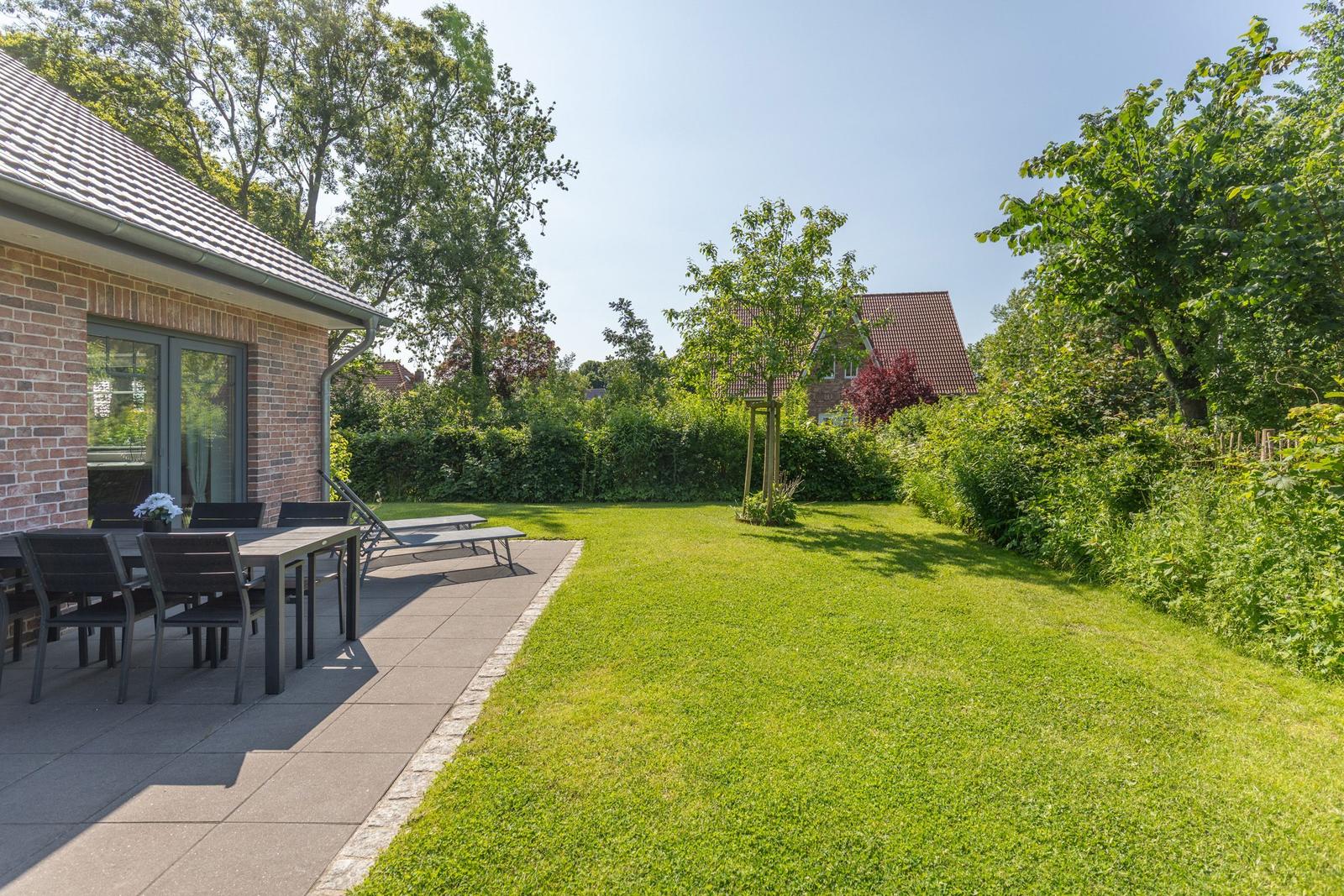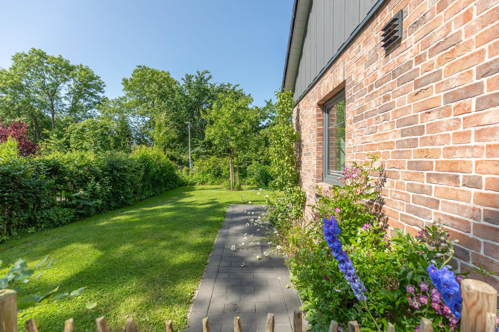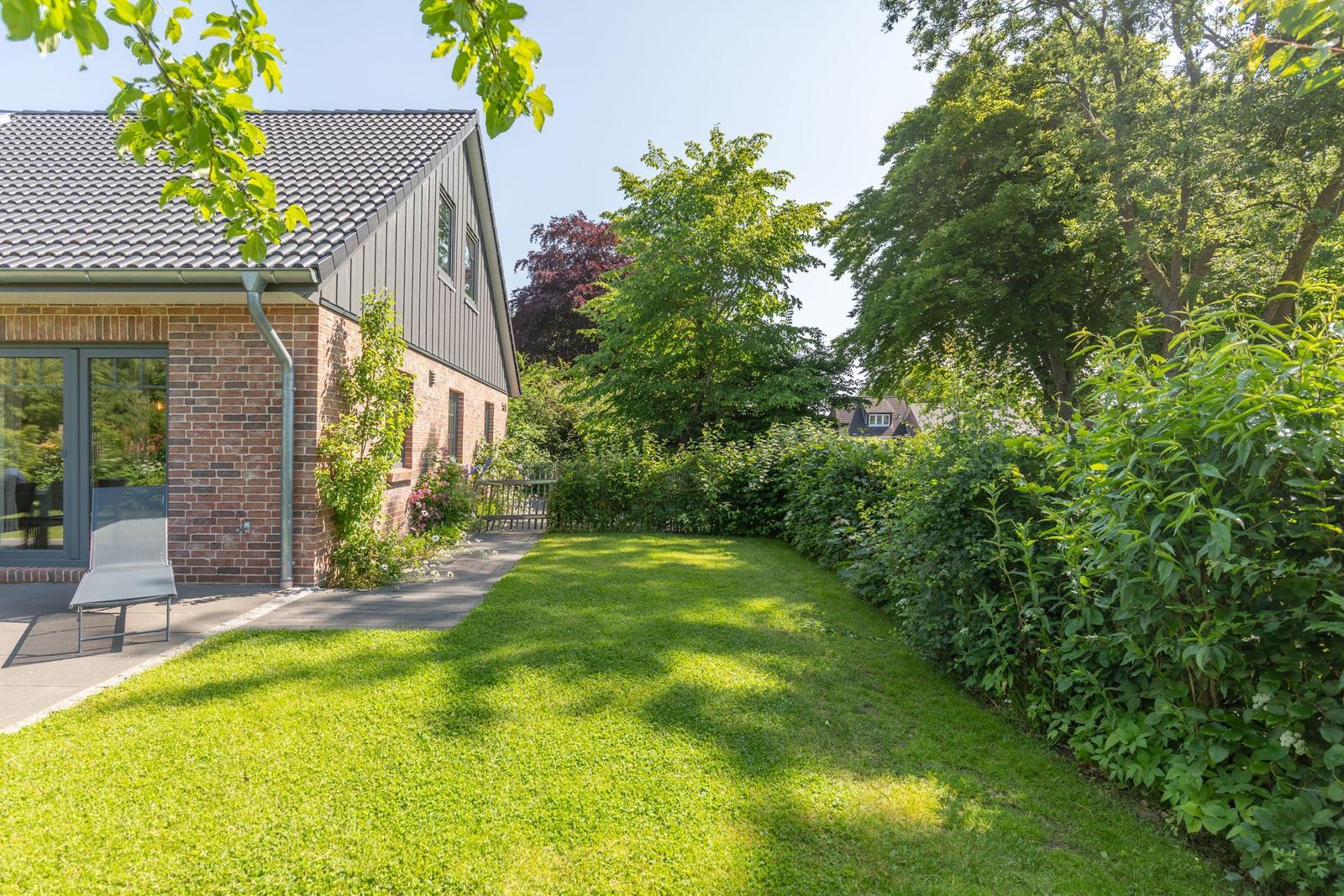 Das Ferienhaus "Norderreihe" in Ostenfeld bietet Gästen eine attraktive Außenbereichsgestaltung auf einem eingezäunten Grundstück von 380 m², das zur alleinigen Nutzung zur Verfügung steht. Hier können Familien mit Kindern unbeschwert im Garten spielen oder auf der Terrasse entspannen. Komfortable Gartenmöbel, Sonnenliegen und ein Sonnenschirm schaffen eine einladende Atmosphäre. Für gesellige Abende steht ein Kohlegrill bereit. Der Außenbereich ist somit ideal, um die Natur zu genießen und relaxed Zeit im Freien zu verbringen. Zusätzlich sorgt ein Privatparkplatz direkt am Haus, inklusive einer Ladestation für Elektroautos, für moderne Annehmlichkeiten. Die ruhige, ländliche Lage lädt zudem zu Erkundungstouren der Umgebung ein, während Bäcker und Einkaufsmöglichkeiten fußläufig erreichbar sind.