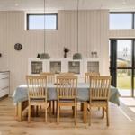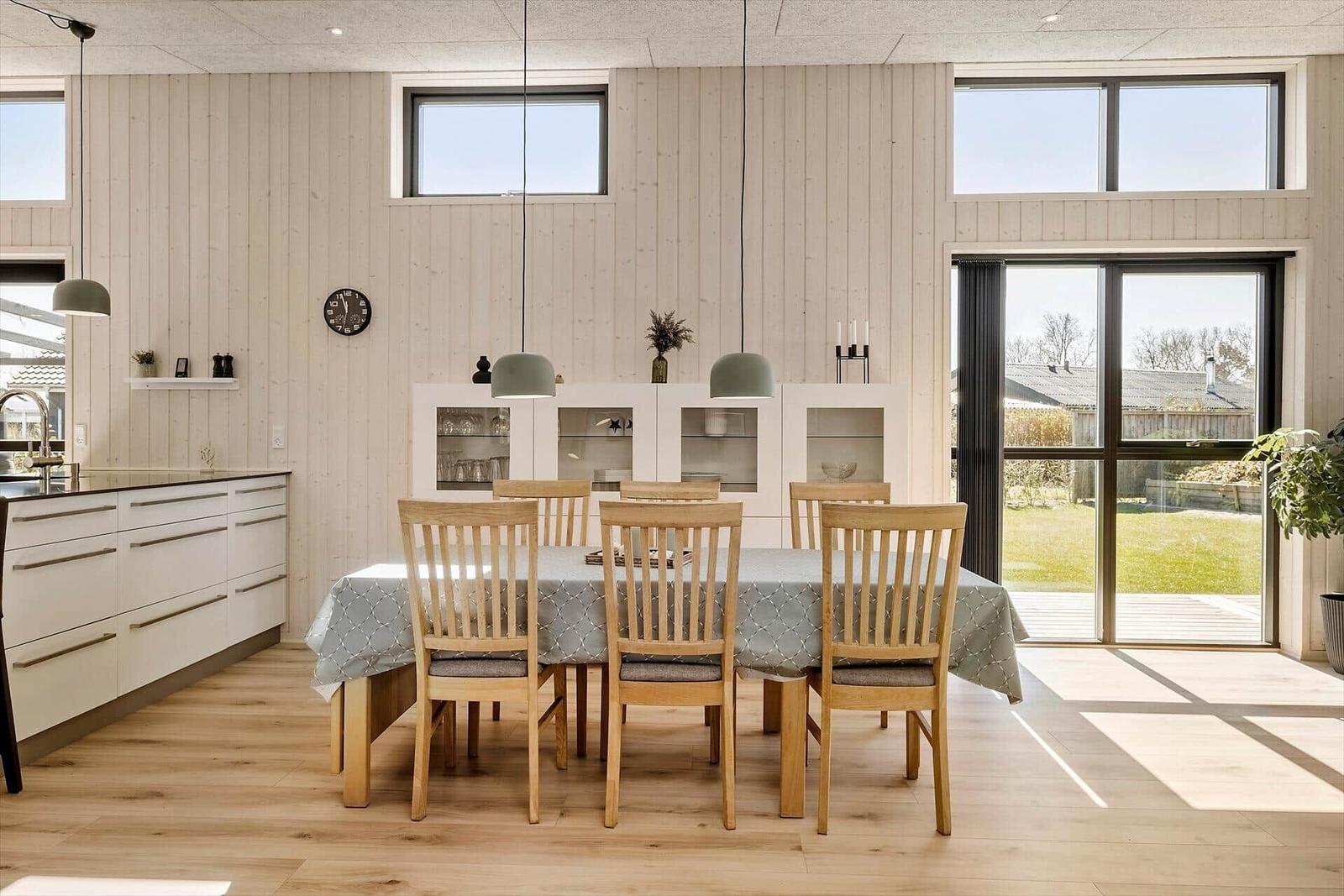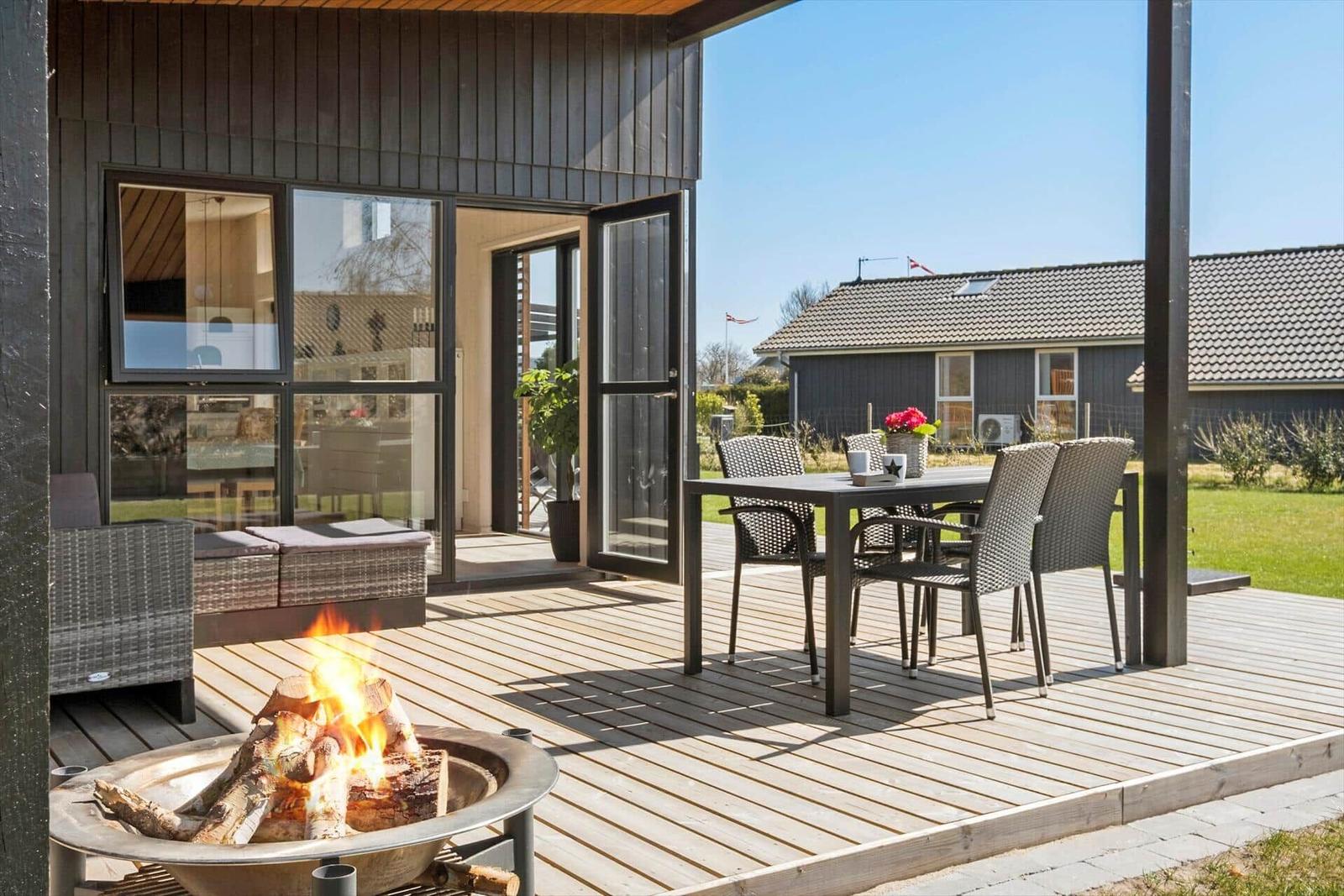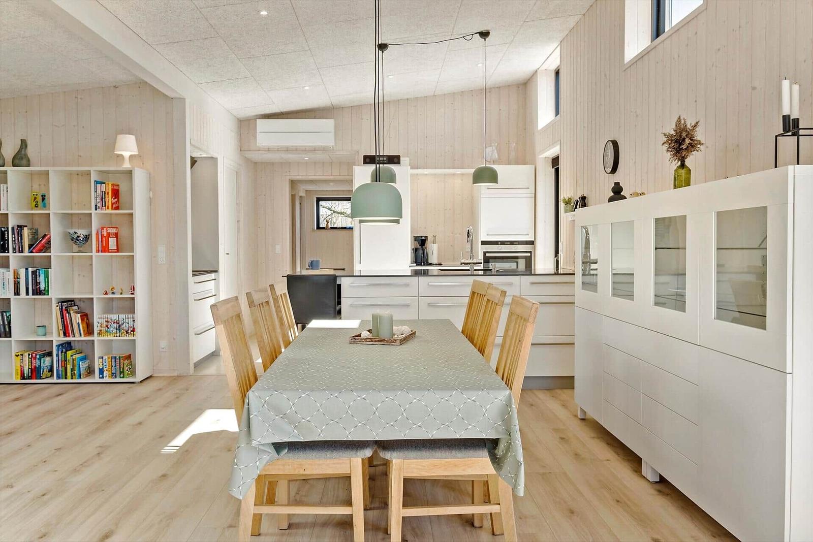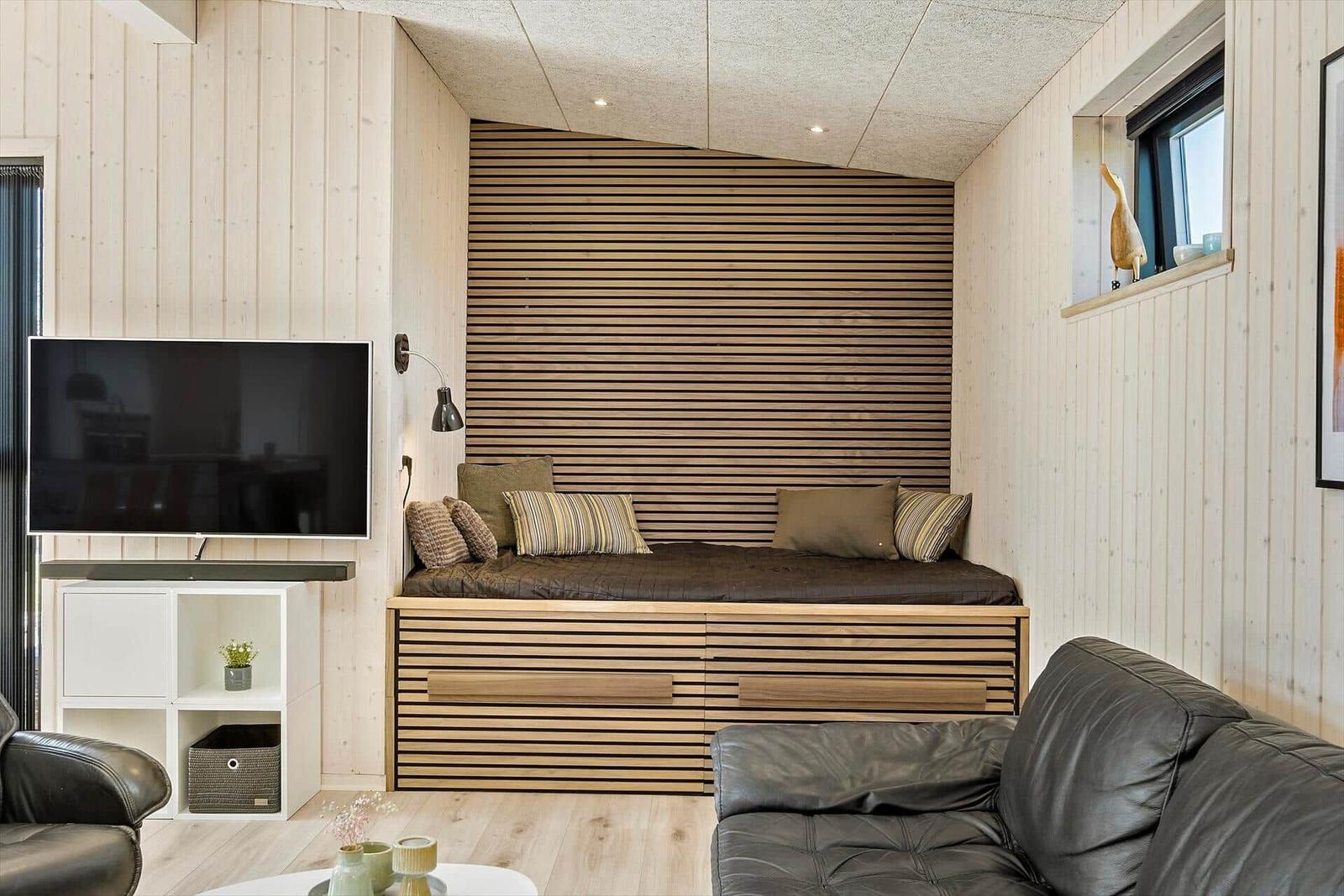 Das attraktive Holzferienhaus aus dem Jahr 2020 bietet eine moderne und einladende Einrichtung, ideal für bis zu sechs Personen. Die Raumaufteilung umfasst einen Schlafraum mit einem Einzelbett, einen zweiten Schlafraum mit zwei Einzelbetten sowie eine Schlafnische im Wohnbereich, die zusätzlichen Schlafkomfort und Gemütlichkeit bietet. Der offene Wohnraum vereint eine gemütliche Sofaabteilung, einen Essplatz und eine gut ausgestattete Küche. Das Badezimmer verfügt über eine Dusche, während ein praktischer Hauswirtschaftsbereich mit Waschmaschine und Wäschetrockner für zusätzlichen Komfort sorgt. Das Ferienhaus garantiert ein komfortables Urlaubserlebnis und ist perfekt auf die Bedürfnisse von Familien und Hundebesitzern ausgelegt. Eine Vielzahl gemeinschaftlich nutzbarer Ausstattungen, wie Bollerwagen, Hochstühle und Kinderreisebetten, stehen zur Verfügung, die bequem in einem nahegelegenen Feriepartner-Büro abgeholt werden können.
