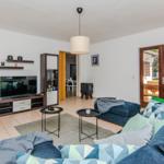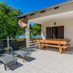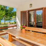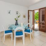 Die Wohnfläche des Hauses (120 m²) erstreckt sich im Erdgeschoss und ist aufgeteilt in ein Wohnzimmer, eine voll ausgestattete Küche mit Essbereich, drei Schlafzimmer mit Doppelbett und zwei Badezimmer, eines mit Badewanne und das andere mit Dusche. Die Schlafzimmer sind klimatisiert. Das Wohnzimmer verfügt über ein Schlafsofa für zwei Personen. Das Ferienhaus verfügt über eine 25 m² große Terrasse mit Meerblick, die mit Sonnenschirm, Liegestühlen, Sitzecke, Tisch und Stühlen ausgestattet ist. Zum Ferienhaus gehört außerdem ein Garten (2000 m²) mit einem Pavillon mit Grill, Tisch und Stühlen, Sonnenschirm, Liegestühlen und Außendusche. Am Eingang des Grundstücks befinden sich 3 Stufen.