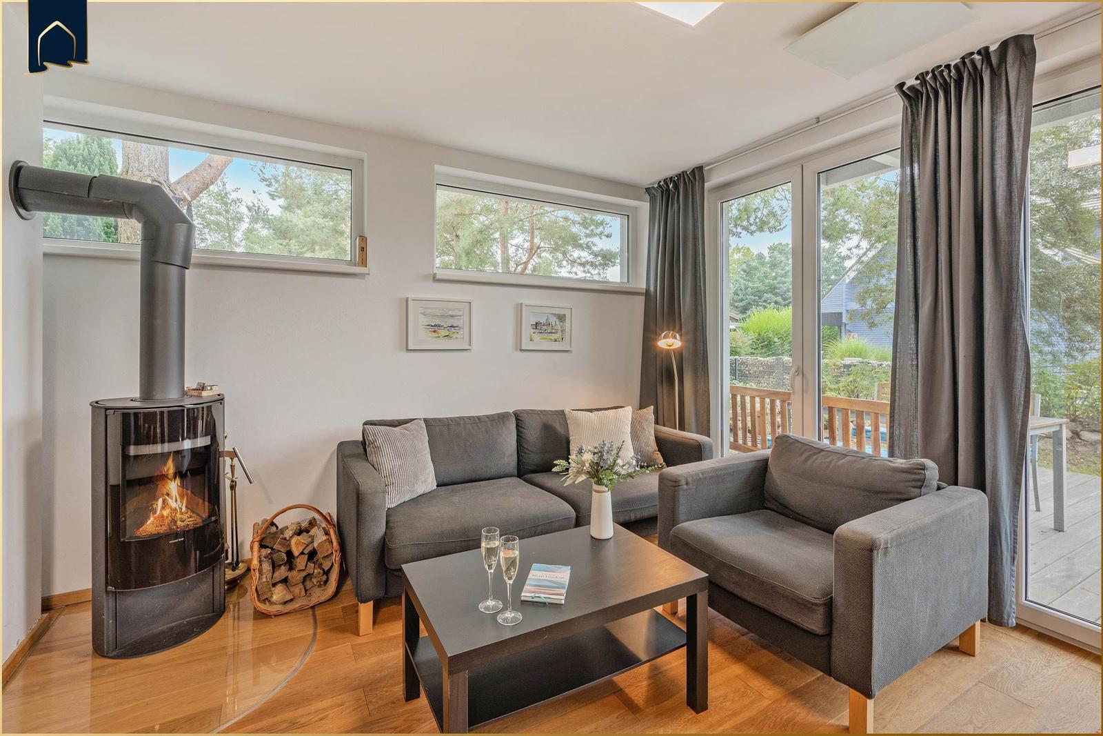 Zwei moderne Badezimmer, eines davon mit Fenster, fügen zusätzlichen Komfort hinzu. Ein gemütlicher Kamin schafft eine einladende Atmosphäre, während die HiFi-Anlage und der TV für Unterhaltung sorgen. WLAN ist ebenfalls vorhanden.