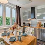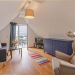 Diese charmante Ferienwohnung bietet großzügigen Platz für bis zu sechs Personen und zeichnet sich durch ihre durchdachte Ausstattung aus. Sie verfügt über drei Schlafzimmer, darunter zwei mit bequemen Doppelbetten und eines mit zwei Einzelbetten. Die offene Küche ist ideal für gemeinsame Kochabende und ausgestattet mit Geschirrspüler, Backofen, Elektro-/Gasherd sowie Kühlschrank und Kaffeemaschine.