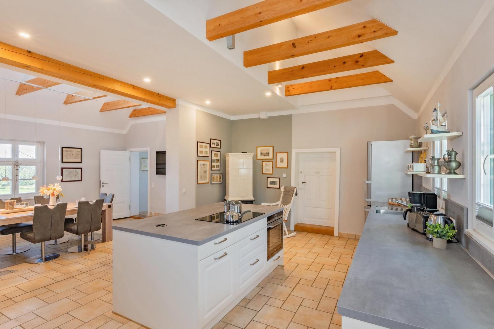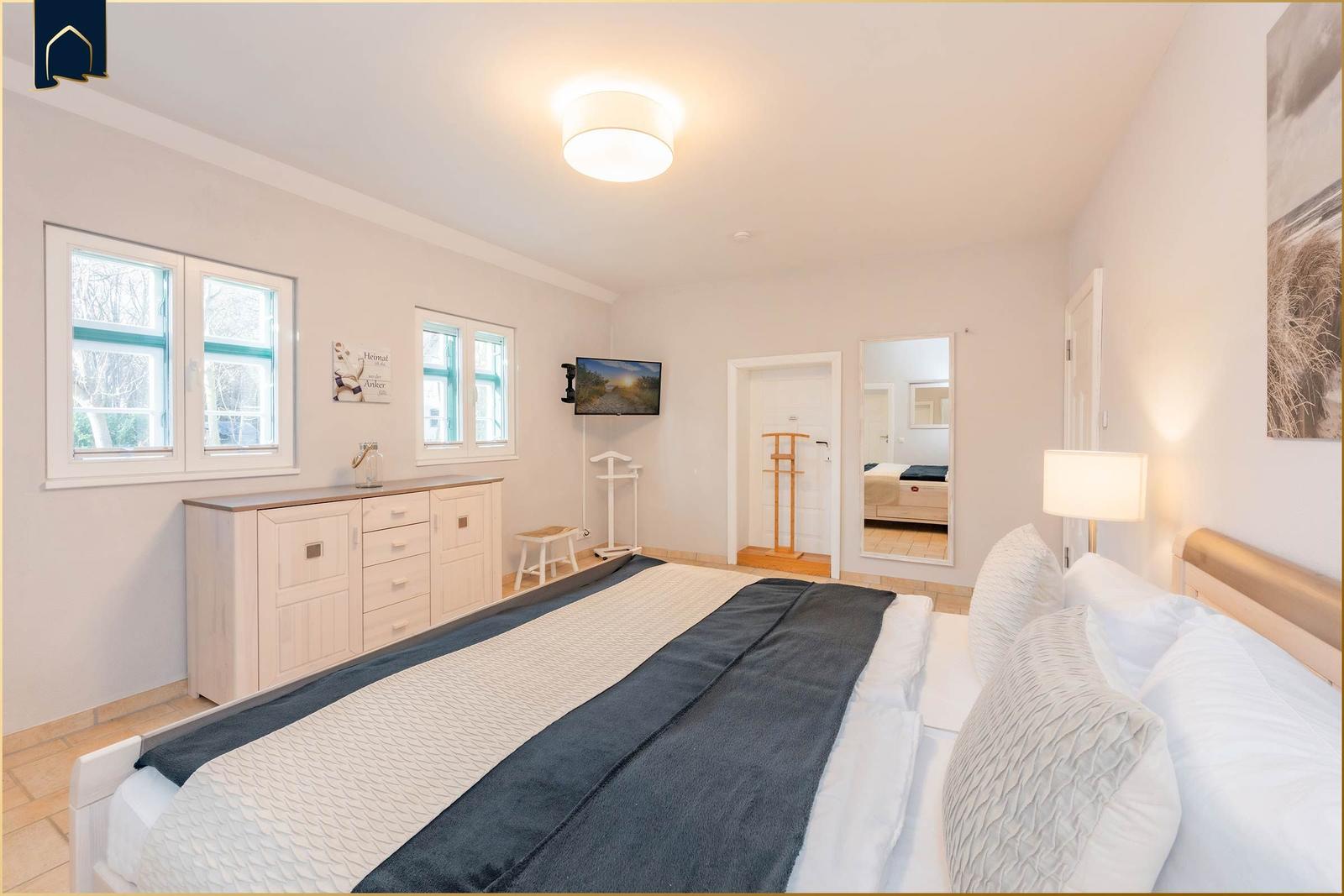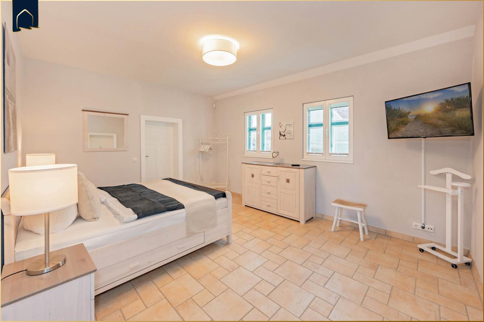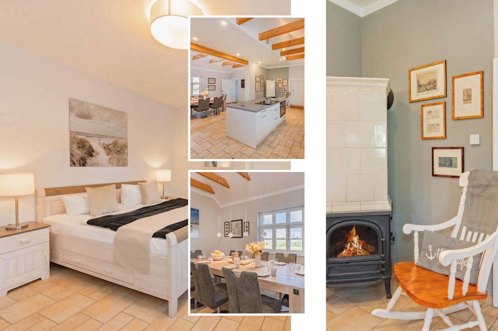 Die Ferienwohnung bietet eine großzügige Raumaufteilung mit vier Schlafzimmern, darunter drei Doppelbetten und zwei Einzelbetten, ideal für Familien oder Gruppen. Zwei moderne Badezimmer, eines mit Dusche und das andere mit Badewanne, sorgen für zusätzlichen Komfort. Die offene Küche ist vollständig ausgestattet mit einem Geschirrspüler, Elektro-/Gasherd, Backofen, Mikrowelle und Kühlschrank. Eine Kaffeemaschine, Toaster, Wasserkocher und Mixer ergänzen das Angebot. Der Wohnraum mit einem Kamin/Kachelofen lädt zum Verweilen ein und ist mit einer HiFi-Anlage sowie einem TV ausgestattet. Für Allergiker geeignet, bietet die Wohnung zudem Fußbodenheizung, Fliegengitter und Rauchmelder. Praktische Extras wie Geschirrtücher, Geschirr, Besteck und Handtücher sind ebenfalls vorhanden. Ein Parkplatz steht zur Verfügung und Brettspiele sorgen für Unterhaltung. Entspannung im Freien wird durch einen Sonnenschirm unterstützt. Schnelles WLAN rundet das perfekte Urlaubsambiente ab.