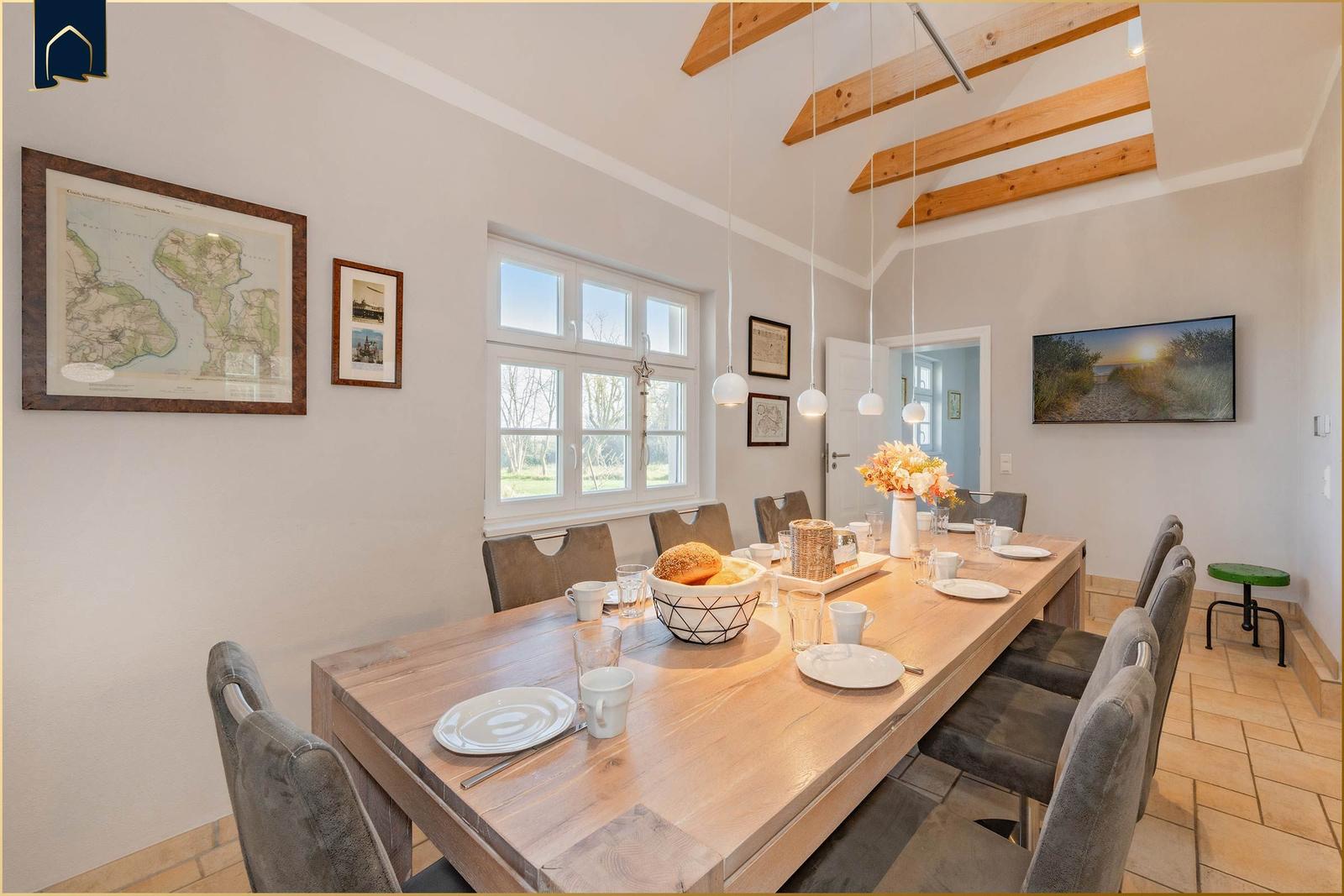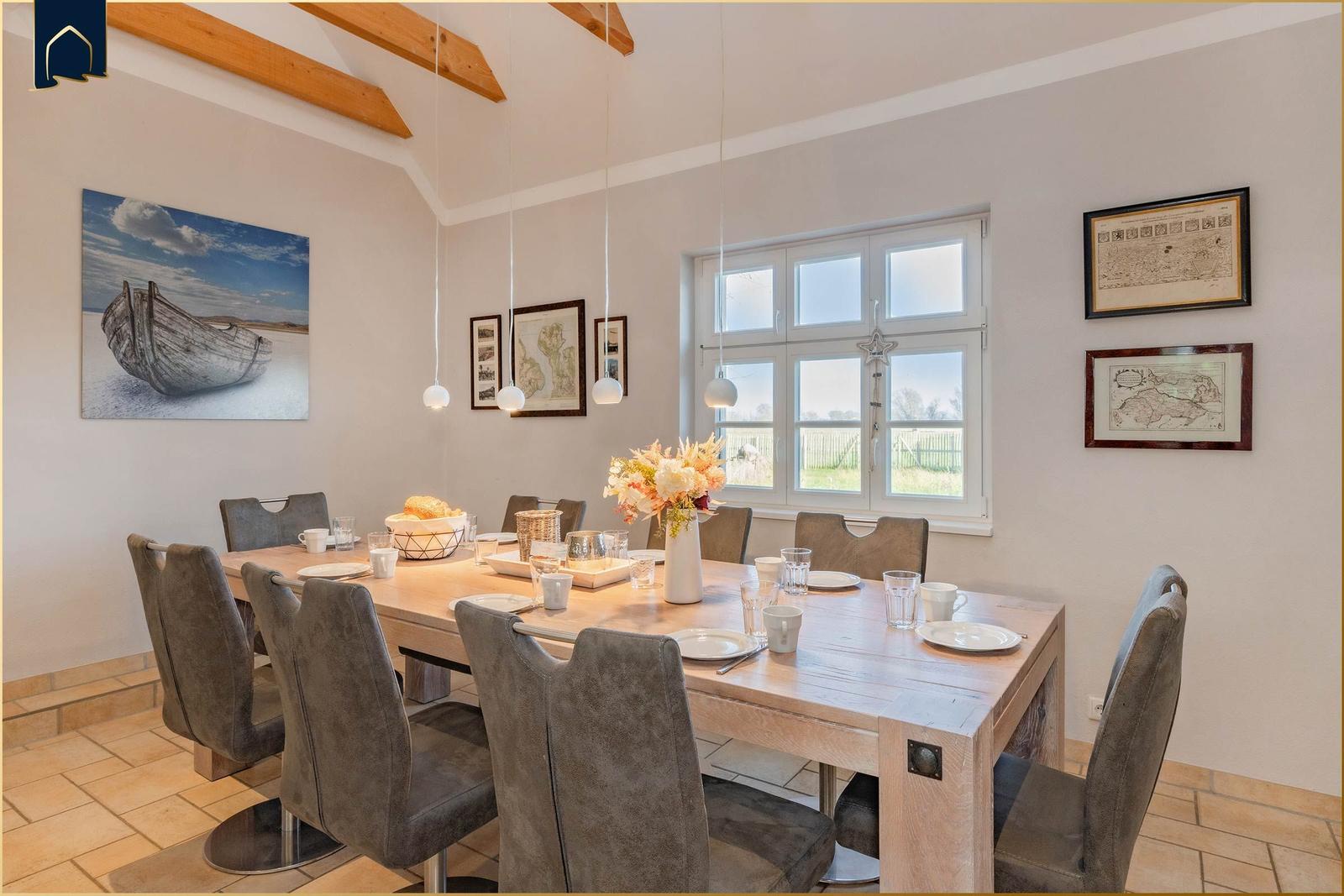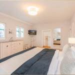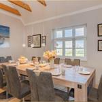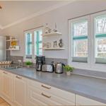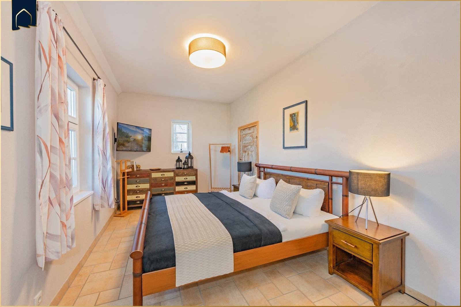 Die Ferienwohnung bietet eine großzügige Raumaufteilung mit vier Schlafzimmern, darunter drei Doppelbetten und zwei Einzelbetten, ideal für Familien oder Gruppen. Zwei moderne Badezimmer, eines mit Dusche und das andere mit Badewanne, sorgen für zusätzlichen Komfort. Die offene Küche ist vollständig ausgestattet mit einem Geschirrspüler, Elektro-/Gasherd, Backofen, Mikrowelle und Kühlschrank. Eine Kaffeemaschine, Toaster, Wasserkocher und Mixer ergänzen das Angebot. Der Wohnraum mit einem Kamin/Kachelofen lädt zum Verweilen ein und ist mit einer HiFi-Anlage sowie einem TV ausgestattet. Für Allergiker geeignet, bietet die Wohnung zudem Fußbodenheizung, Fliegengitter und Rauchmelder. Praktische Extras wie Geschirrtücher, Geschirr, Besteck und Handtücher sind ebenfalls vorhanden. Ein Parkplatz steht zur Verfügung und Brettspiele sorgen für Unterhaltung. Entspannung im Freien wird durch einen Sonnenschirm unterstützt. Schnelles WLAN rundet das perfekte Urlaubsambiente ab.