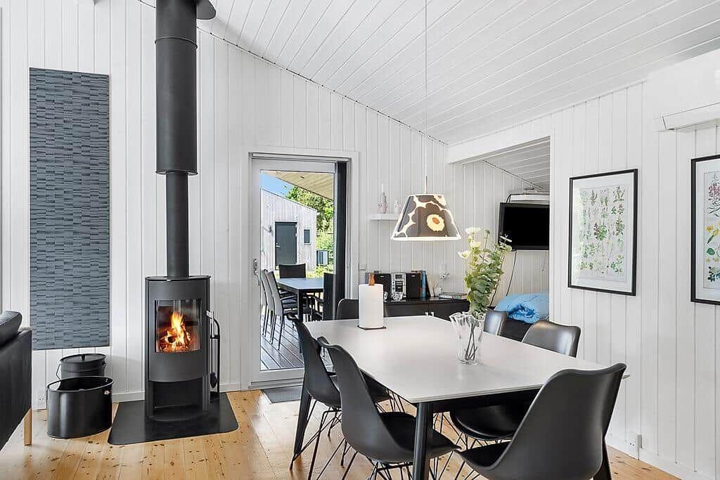 Für die kleinen Gäste stehen ein Kinderhochstuhl und ein Kinderbett bereit. Der Wohnbereich verfügt über einen Smart-TV, DVD-/Blu-ray-Player sowie einen Kamin für gemütliche Abende. Fußbodenheizung sorgt für ein angenehmes Wohnklima. Weitere Annehmlichkeiten sind WLAN, eine Waschmaschine und energieeffizientes Heizen. Ein Garten mit Schaukel und Sandkasten ergänzt das Angebot. Der Strand ist nur 1.150 Meter entfernt, und Einkaufsmöglichkeiten sind in 1.800 Metern erreichbar.