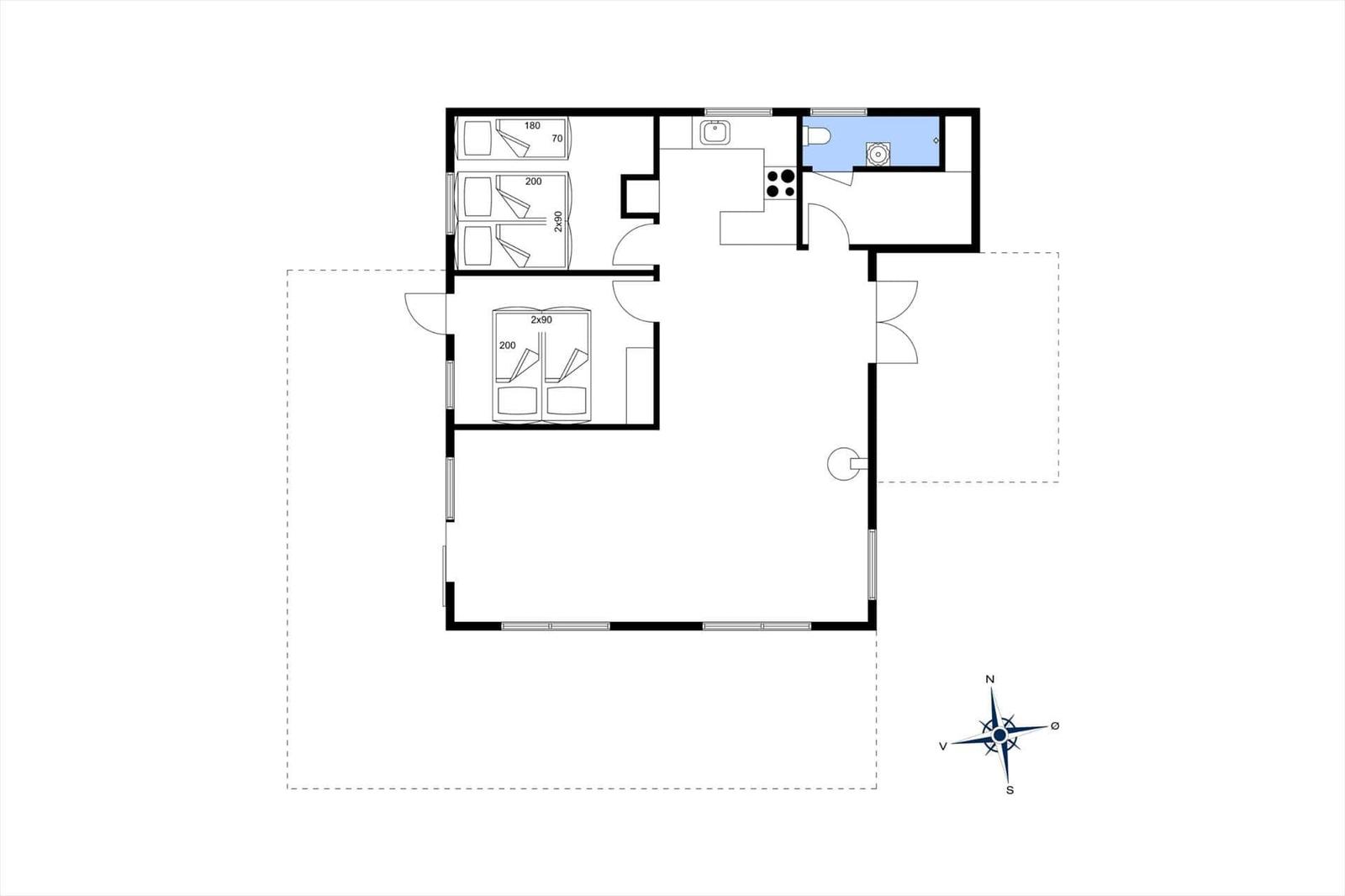 Die Ferienwohnung in Lakolk, Westjütland, bietet Platz für bis zu 5 Erwachsene und zeichnet sich durch eine gemütliche Einrichtung aus. Auf einer großzügigen Fläche von 75 m² befinden sich zwei Schlafzimmer mit zwei Doppelbetten und einem Einzelbett, sowie ein komfortables Wohnschlafzimmer, ideal für entspannte Abende am Kamin.