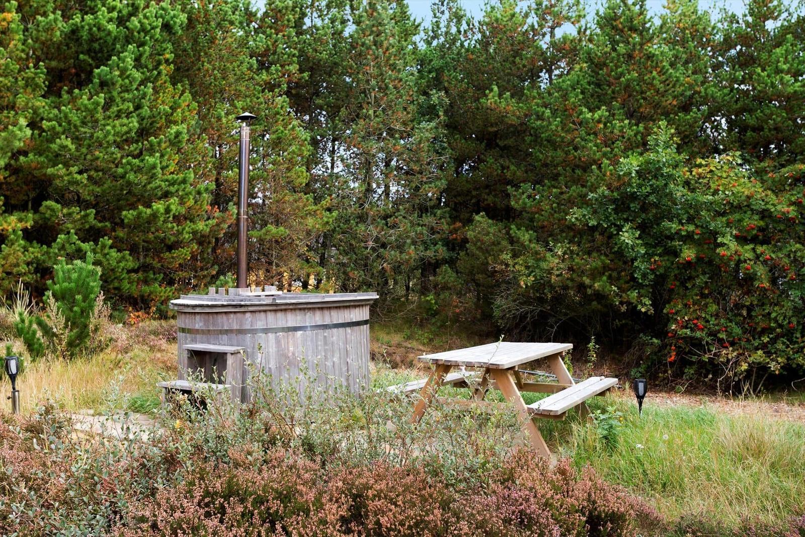 Die Ferienwohnung bietet eine harmonische Verbindung aus modernem Komfort und naturnahem Wohnen. Eine offene Küche lädt dazu ein, kulinarische Köstlichkeiten zuzubereiten. Sie ist mit einem Geschirrspüler, Elektro-/Gasherd, Backofen, Mikrowelle, Kühlschrank und einer Kaffeemaschine ausgestattet. Dank WLAN bleibt man jederzeit vernetzt. Das helle Wohnschlafzimmer ist der perfekte Ort zur Entspannung, während zwei Badezimmer, eines davon mit Badewanne, höchsten Komfort bieten. Die Schlafräume mit drei Doppel- und einem Einzelbett gewährleisten erholsame Nächte. Zu den praktischen Annehmlichkeiten gehören eine Waschmaschine, ein Wäschetrockner und ein Bügeleisen. Eine energieeffiziente Heizung sorgt für behagliche Wärme. Im Garten kann man die beheizbare Badetonne sowie die großzügige Terrasse genießen. Umgeben von der malerischen Heide und Fichten, ist diese Ferienwohnung ein idealer Rückzugsort für Naturliebhaber und Ruhe suchende.