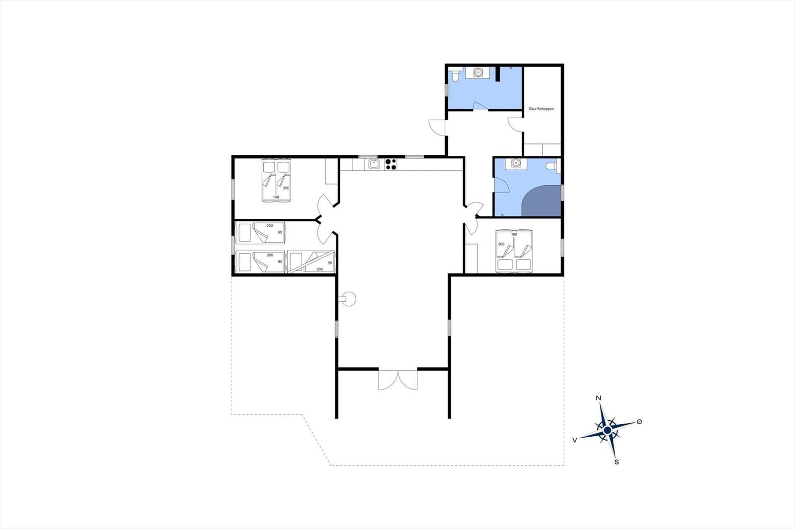 Die Ferienwohnung in Kongsmark, Westjütland, bietet Platz für bis zu acht Erwachsene und überzeugt durch ihre großzügige und gemütliche Ausstattung. Auf 107 m² Fläche stehen drei Schlafzimmer mit insgesamt drei Doppelbetten und zwei Einzelbetten sowie zwei Kinderbetten zur Verfügung. Ein einladendes Wohnschlafzimmer lädt zum Entspannen ein. Die moderne Küche ist mit einem Elektro-/Gasherd, Backofen, Kühlschrank, Geschirrspüler und Kaffeemaschine ausgestattet und bietet zudem eine Gefriermöglichkeit. Komfort wird großgeschrieben: Waschmaschine, Wäschetrockner und eine energiesparende Heizung sind vorhanden. Das Badezimmer verfügt über eine Dusche, und der Smart-TV sorgt für Unterhaltung. Zum Außenbereich gehören ein Spielplatz mit Schaukel und Sandkasten. Internet mit WLAN ist ebenfalls vorhanden. Nur 1.000 Meter bis zum Strand und 2.500 Meter bis zum nächsten Einkauf machen die Lage ideal für erholsame Ferien.